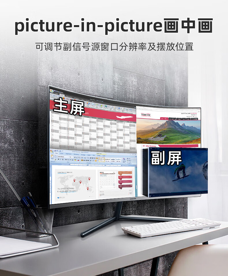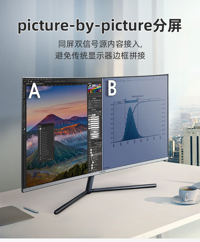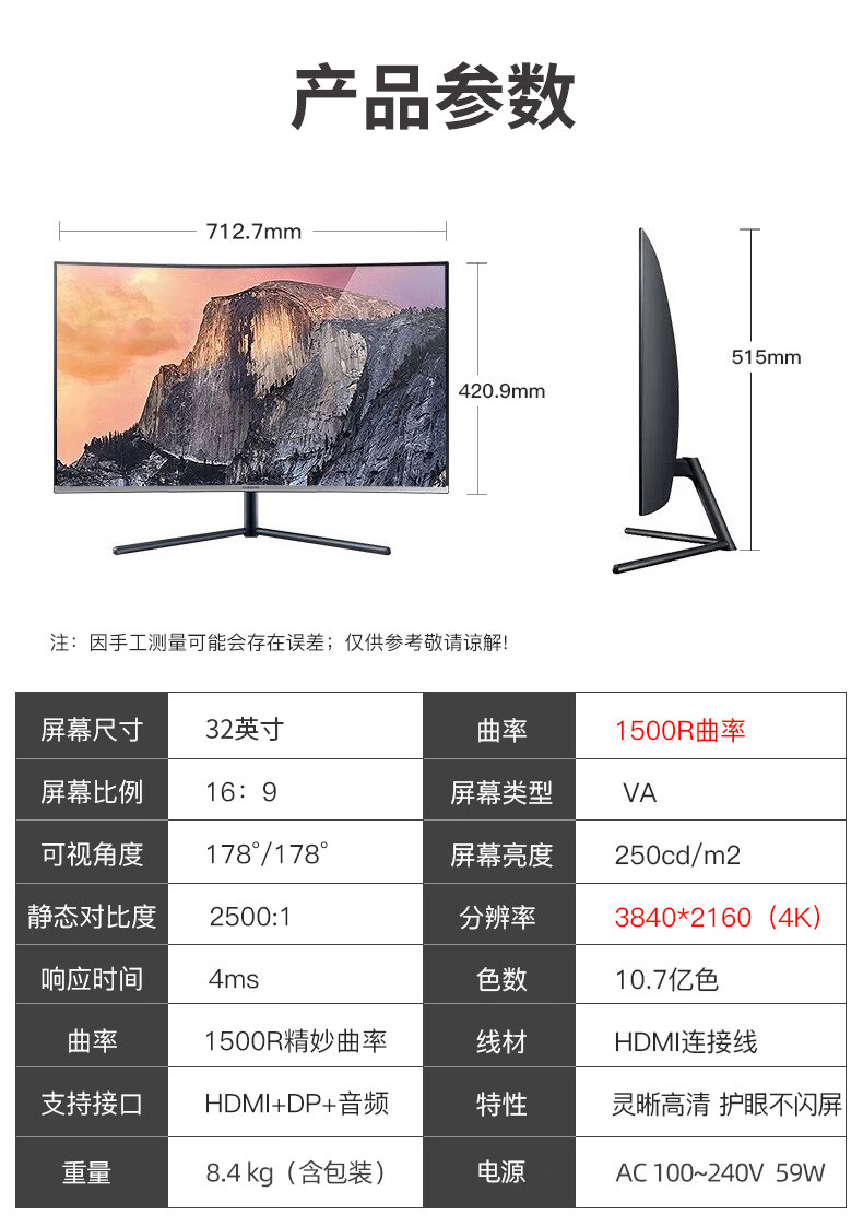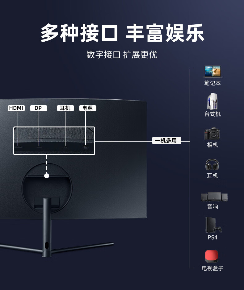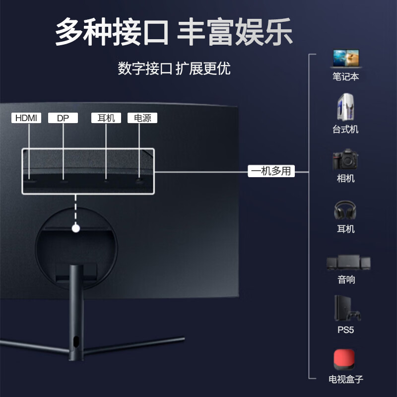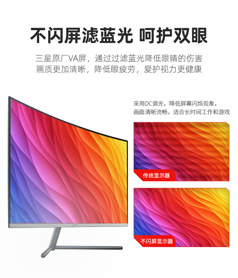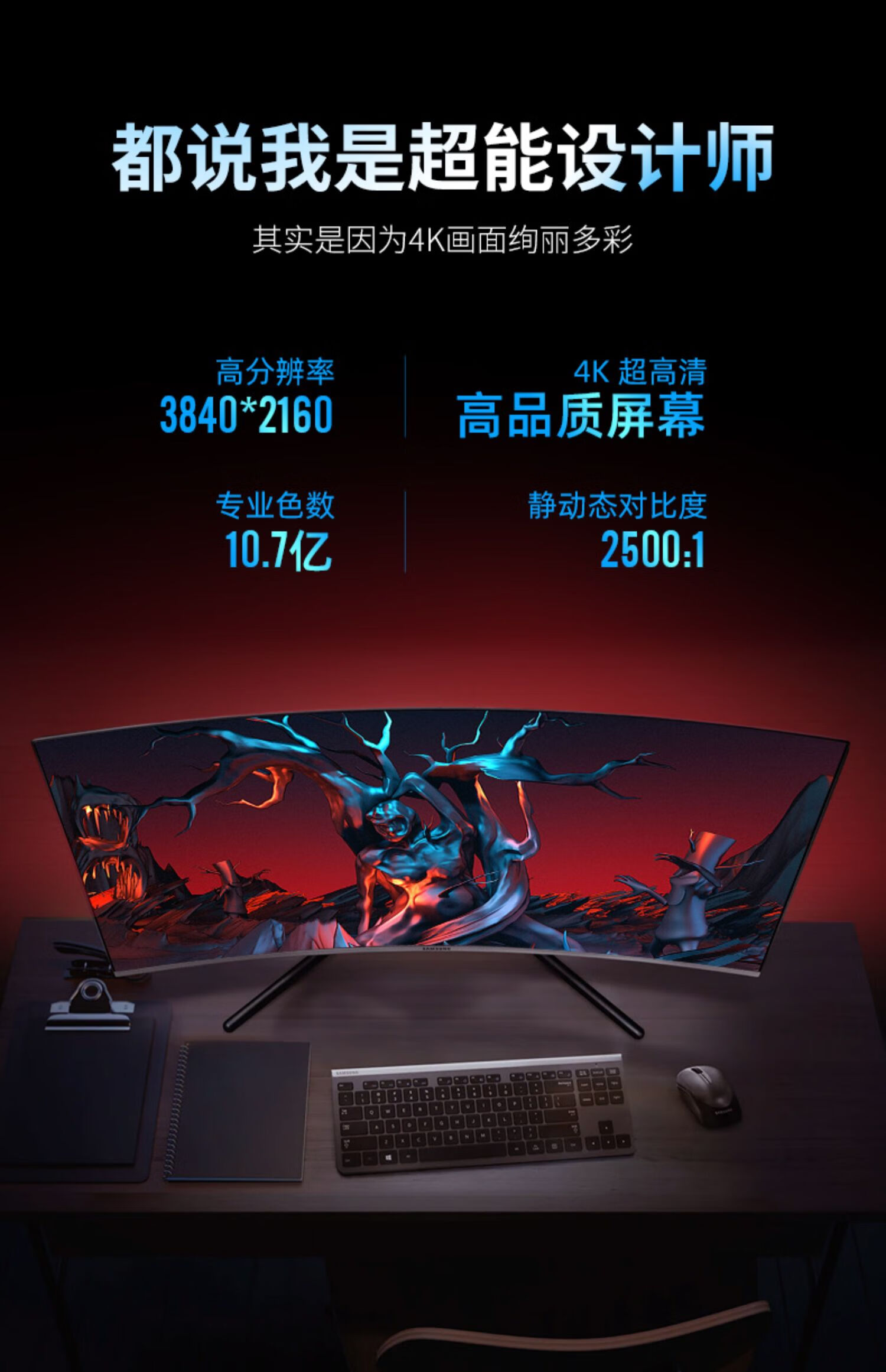 三星(SAMSUNG) 32英寸4K曲面屏 超高清设计绘图电脑显示器 台式外接ps5游戏屏幕 窄边框 银黑色 U32R590CWC 自营