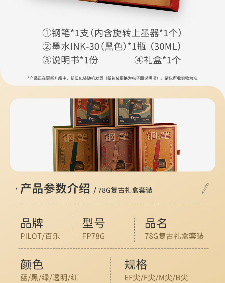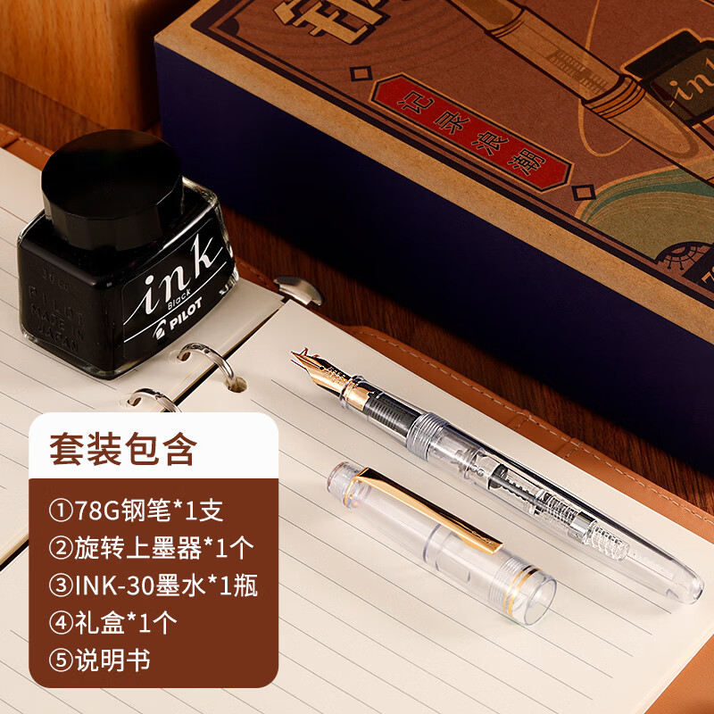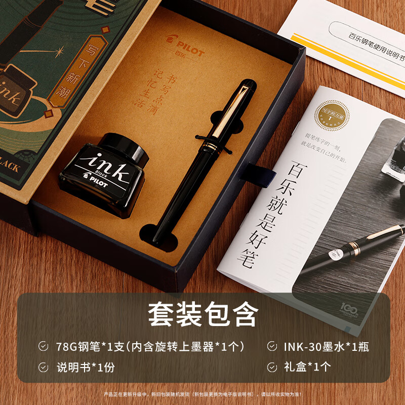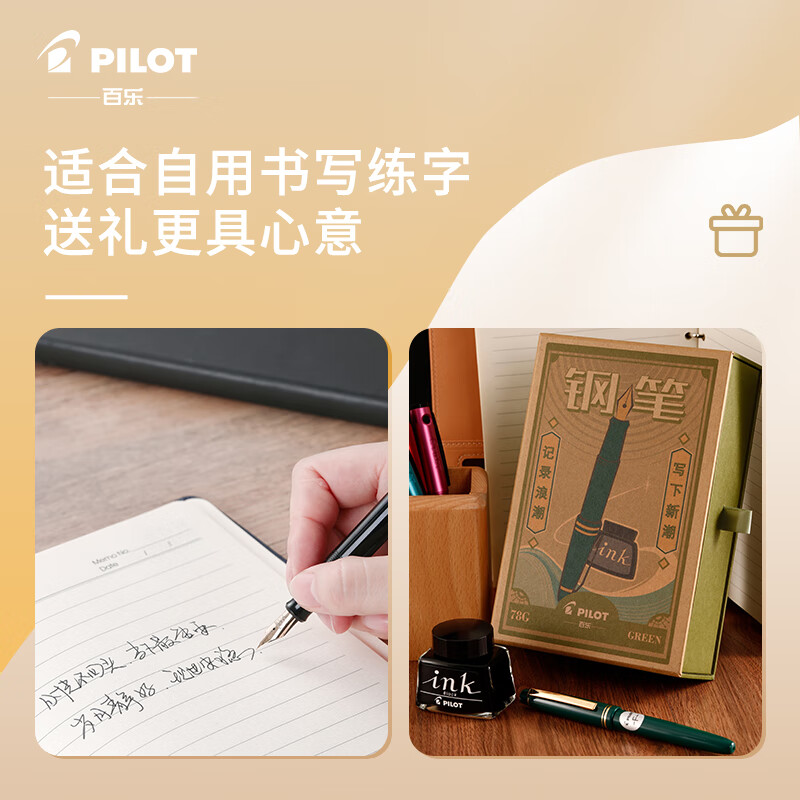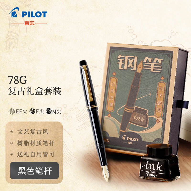 百乐(PILOT)FP-78G+钢笔 商务办公送礼 学生练字签字笔复古礼盒装 黑色F尖 自营
