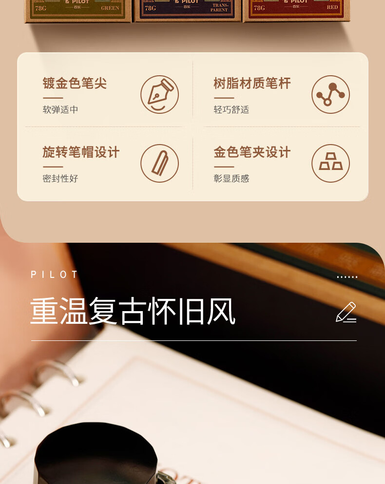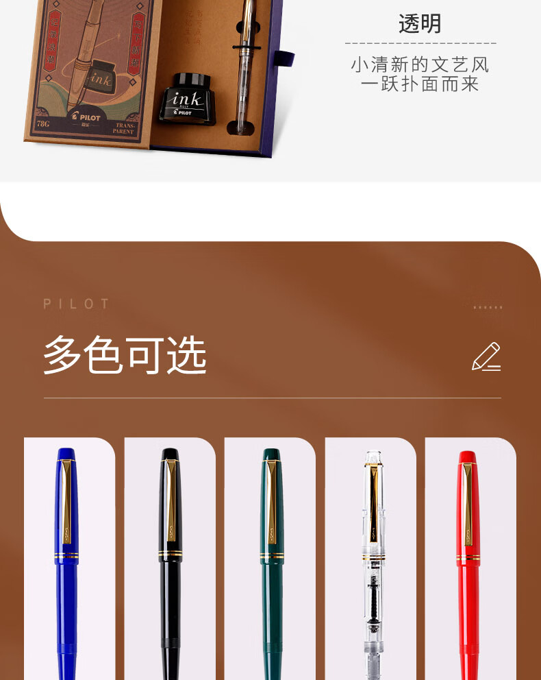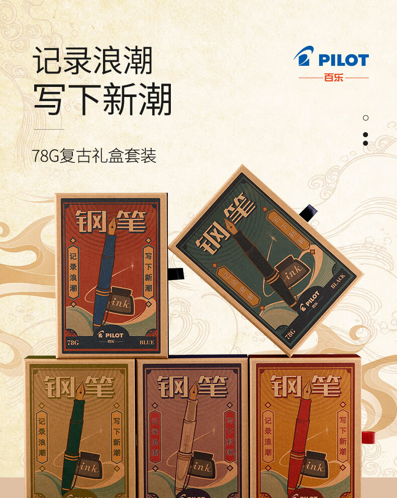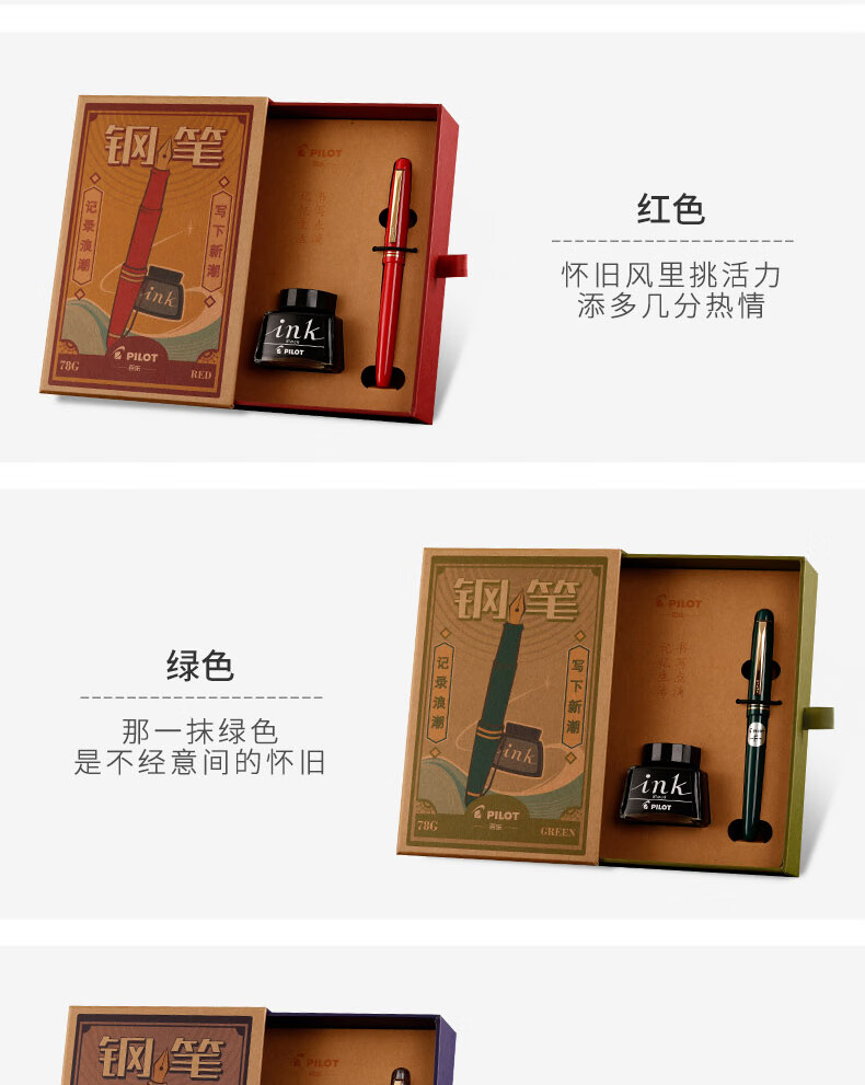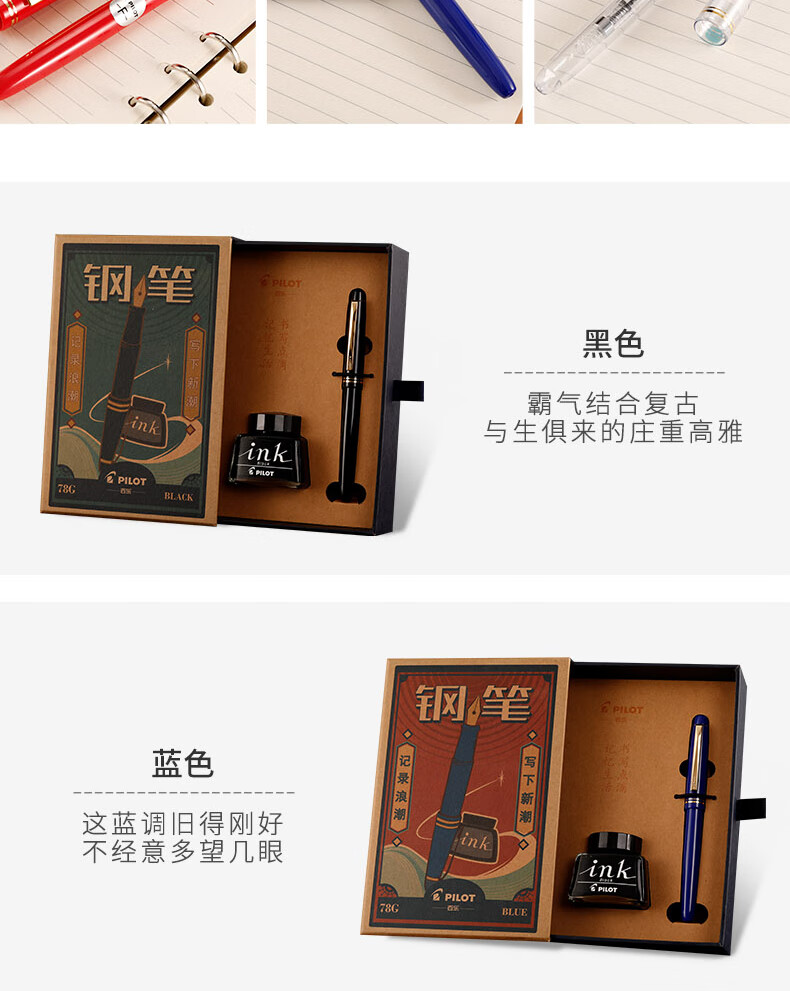 百乐(PILOT)FP-78G+钢笔 商务办公送礼 学生练字签字笔复古礼盒装 黑色F尖 自营