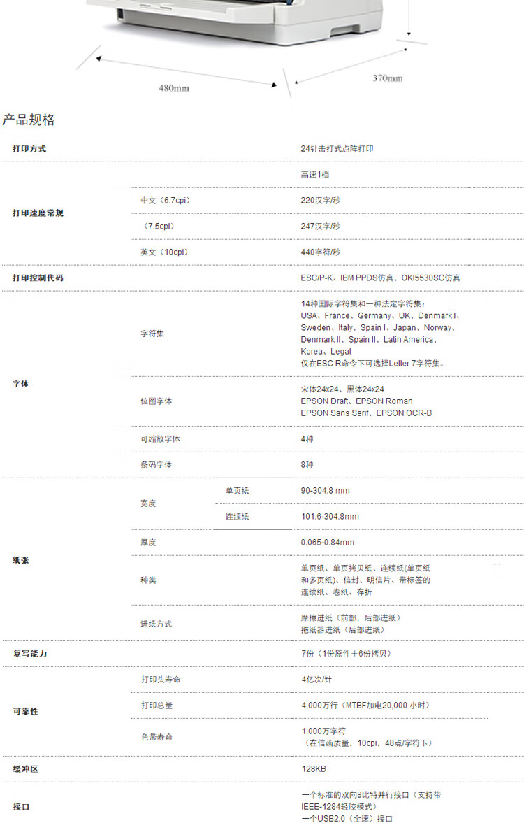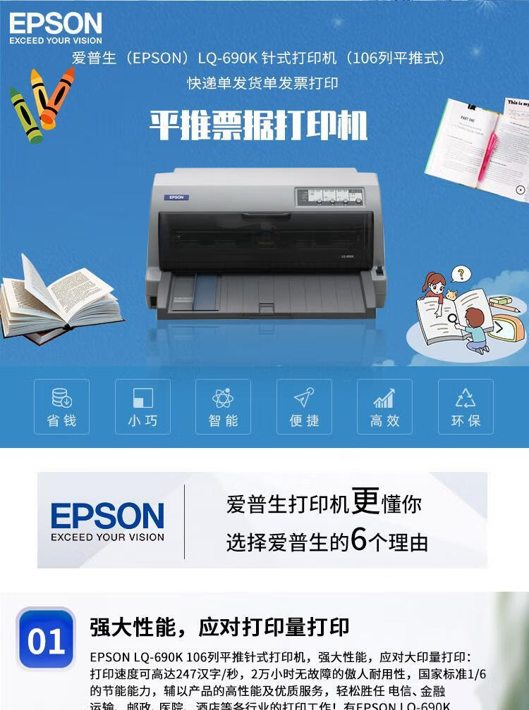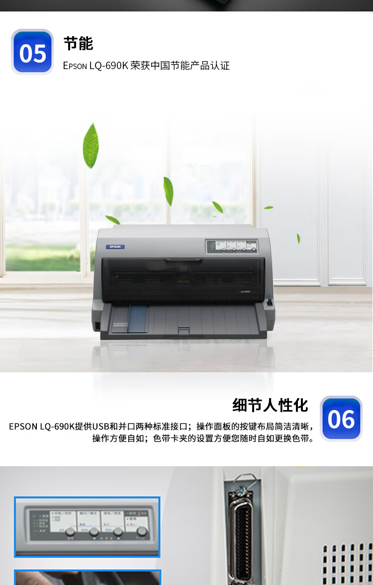 爱普生(EPSON)LQ-690K 针式打印机(106列平推式)快递单发货单发票打印 自营