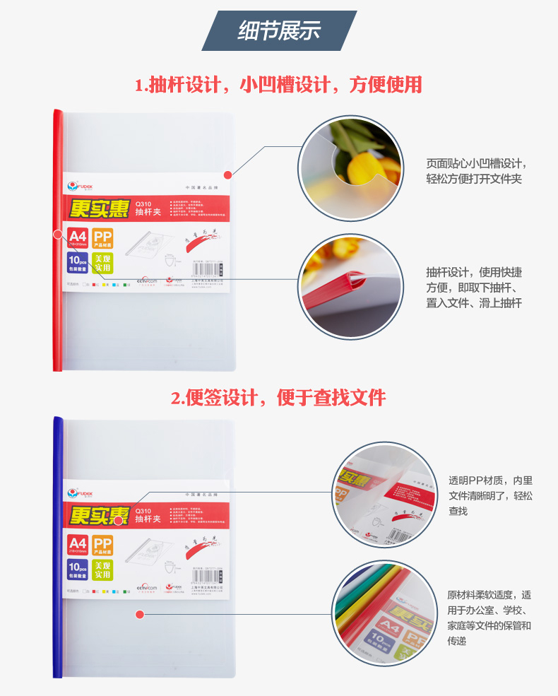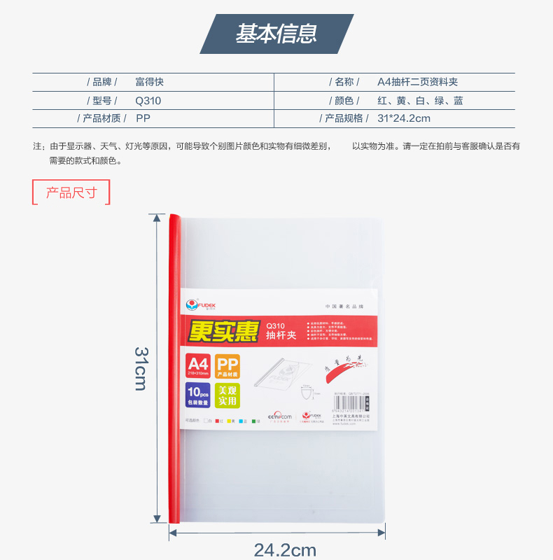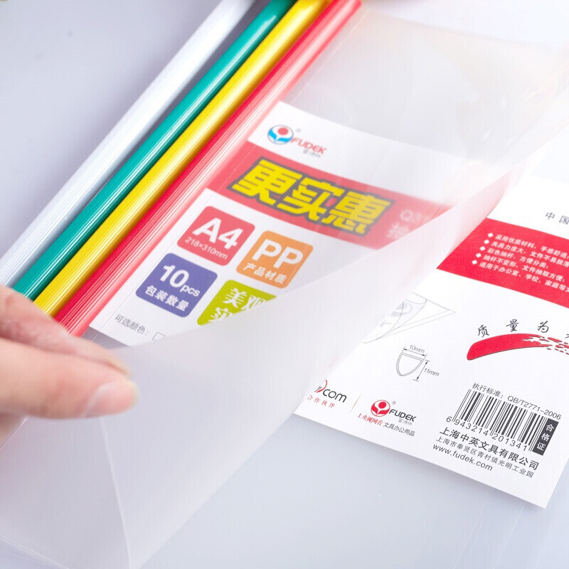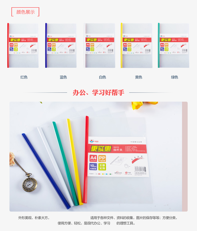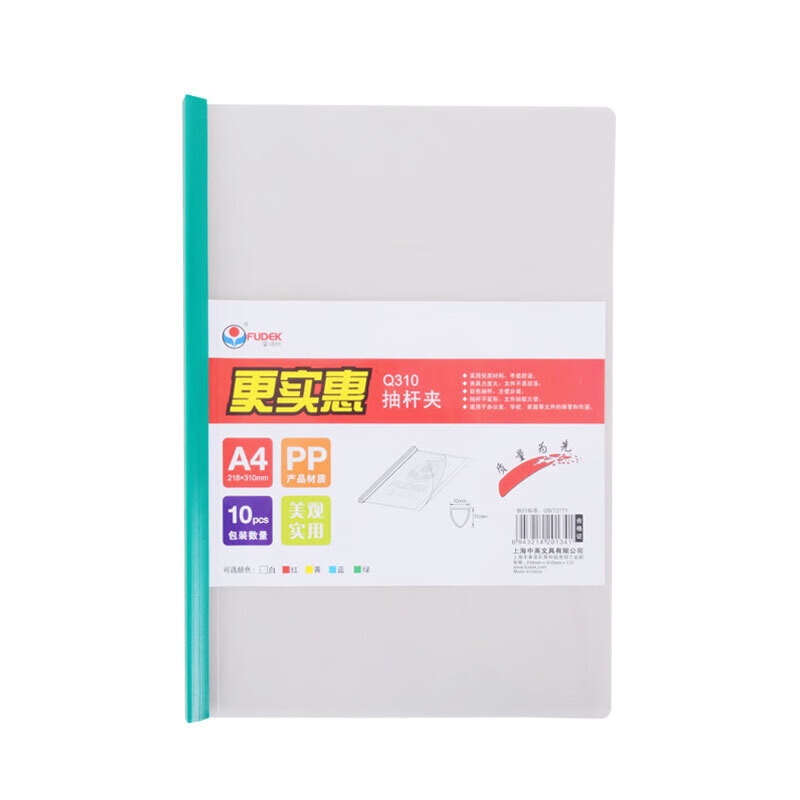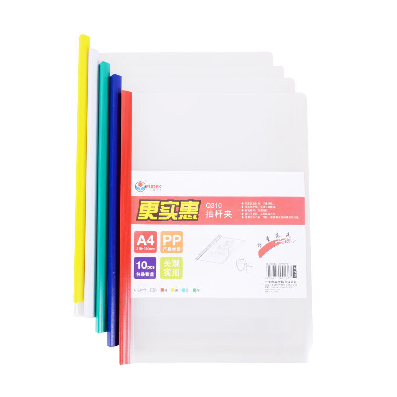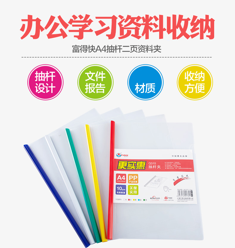 富得快 透明抽杆文件夹A4资料夹拉杆夹透明文件夹活页报告简历夹Q310 配色 A4/100个装 自营