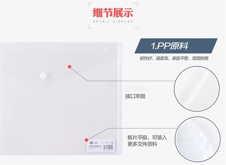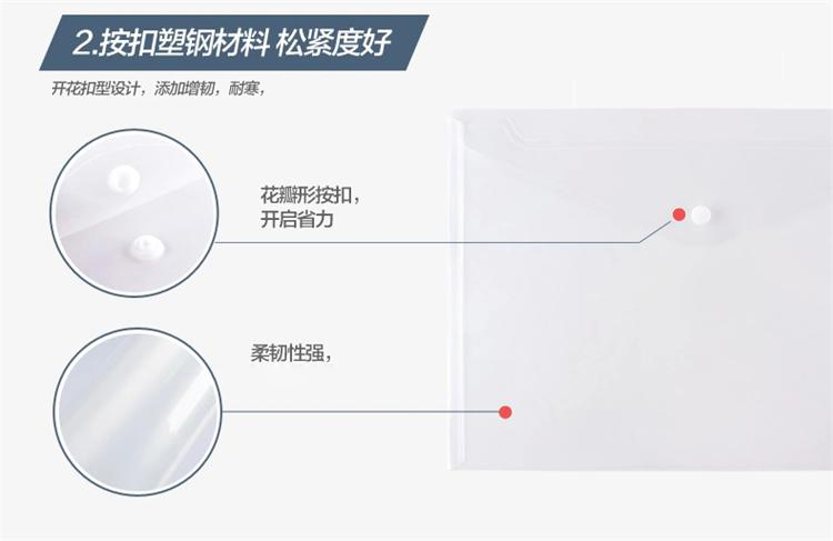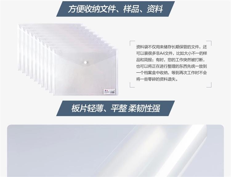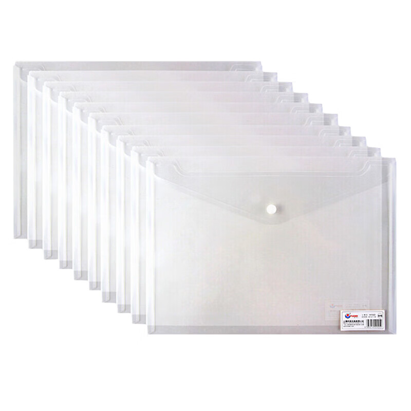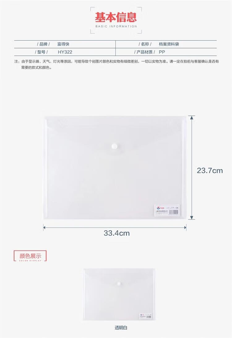 富得快 10个装加厚A4纽扣袋 定制办公文件袋 塑料档案袋按扣文件袋 透明HY322 自营