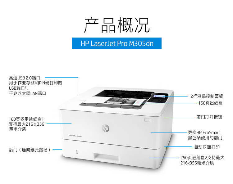 惠普(HP)LaserJet Pro M305dn 黑白激光打印机 A4自动双面高速打印 有线网络连接 商用办公 自营