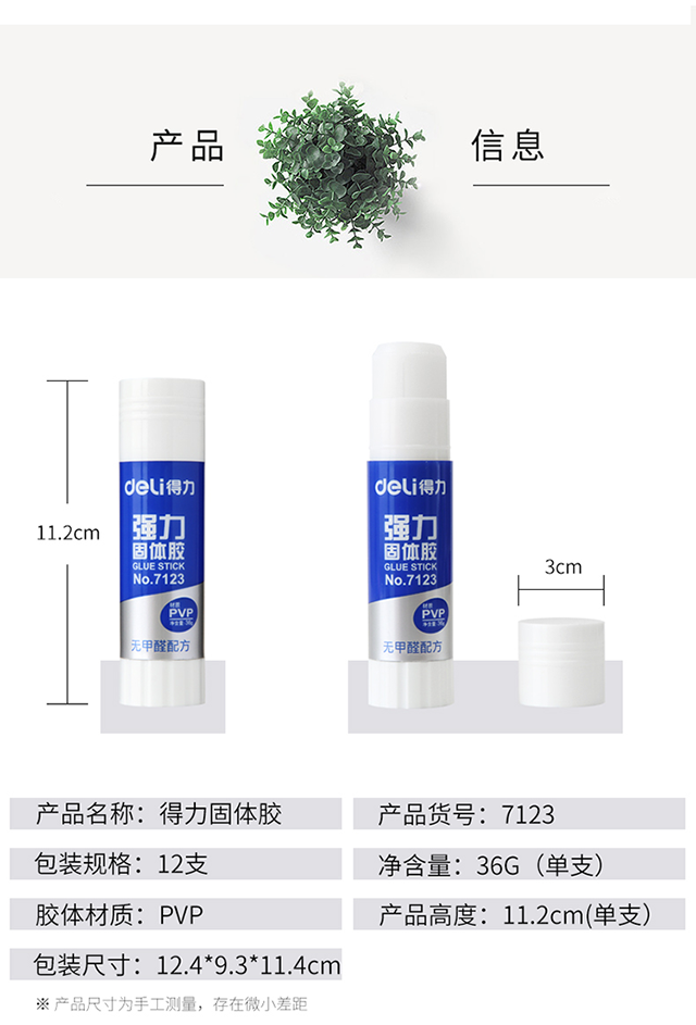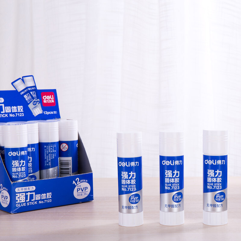 得力(deli)36g强粘性PVP固体胶水 大容量胶体 无甲醛配方强力快干胶棒 12支装 办公学习 7123 自营