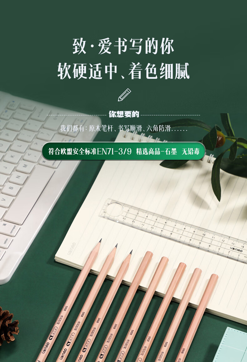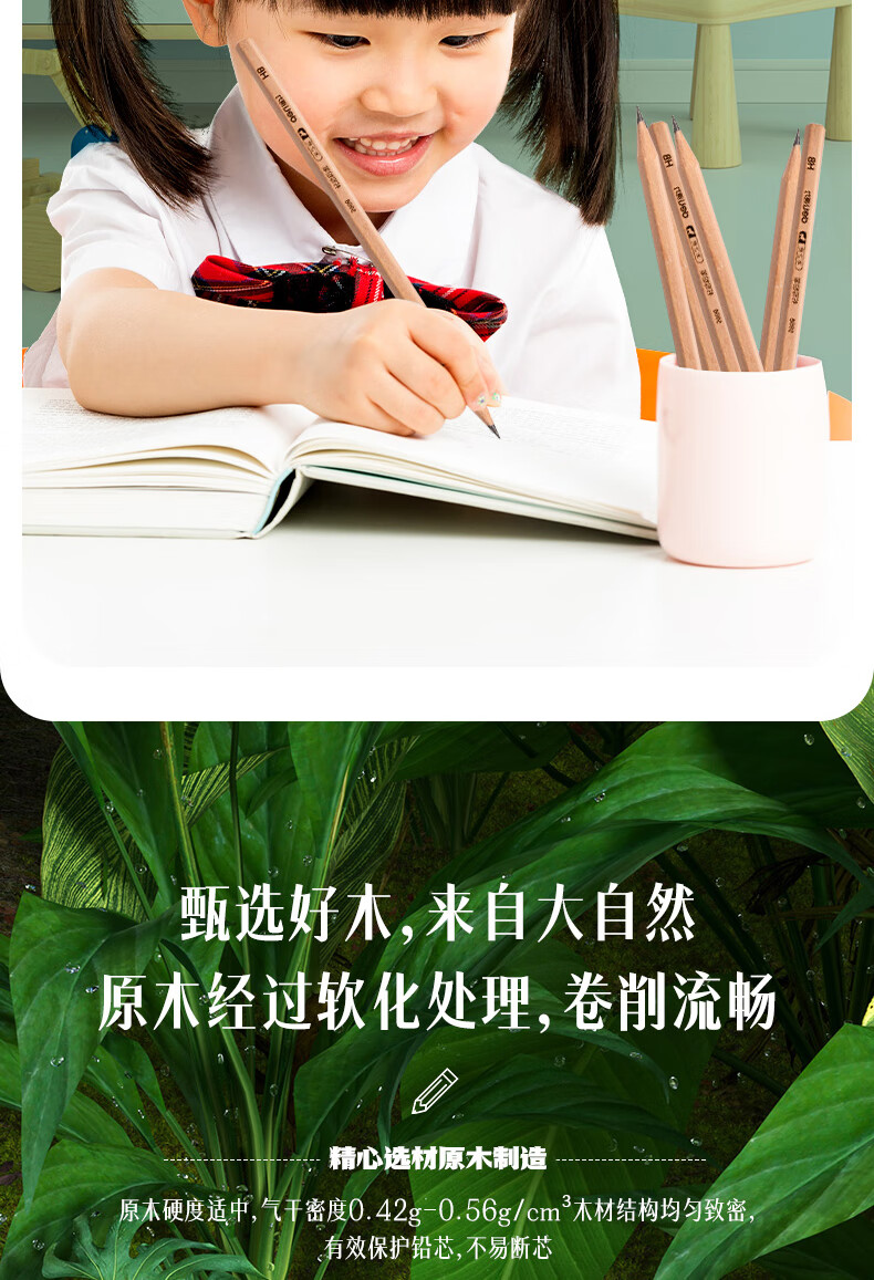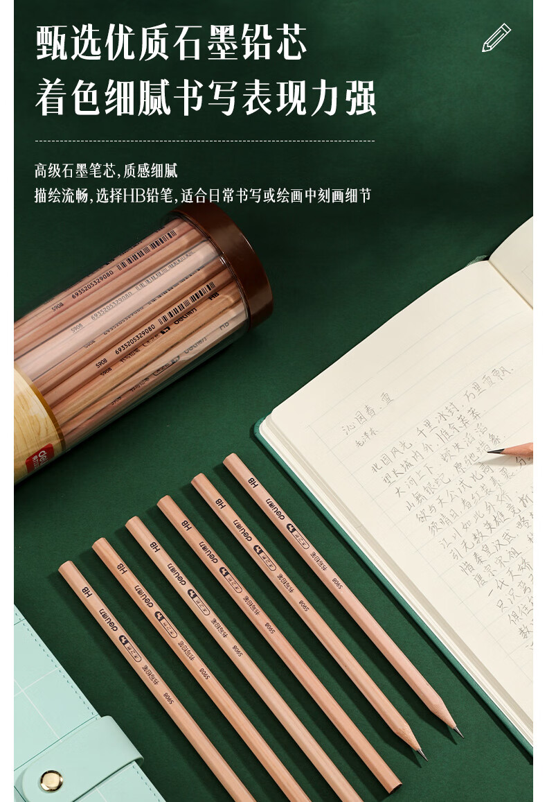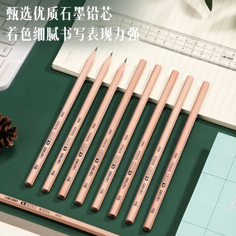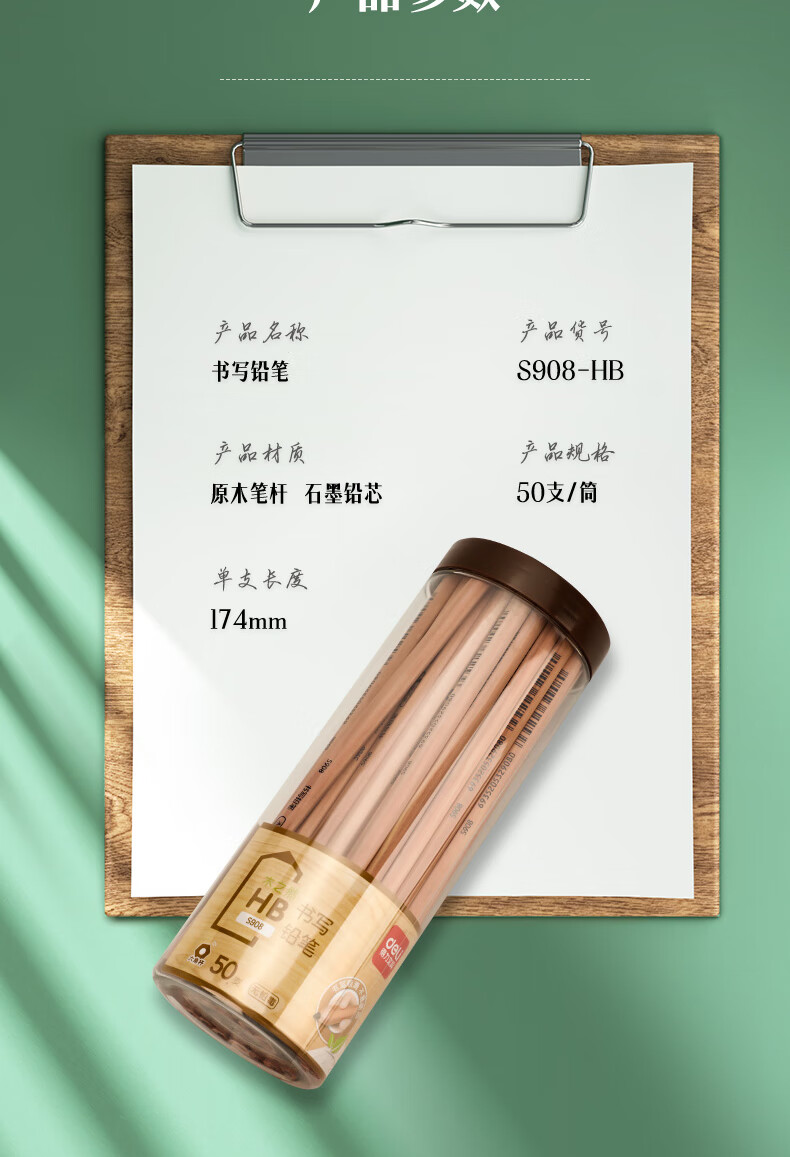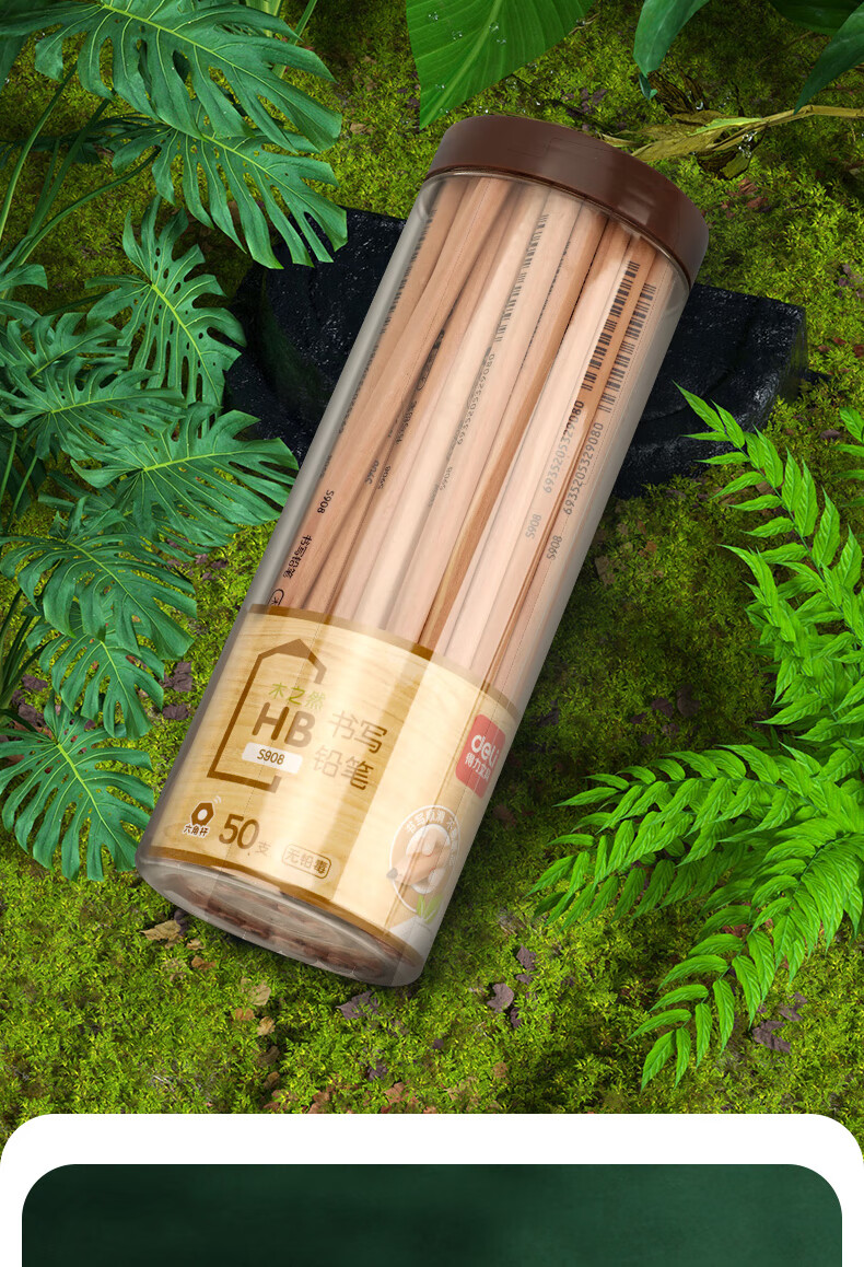 得力(deli) 原木桶装铅笔考试专用素描绘图铅笔筒装学生儿童书写铅笔 50支/桶 【HB】六角笔杆S908 自营
