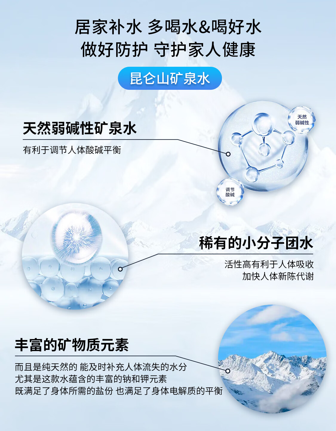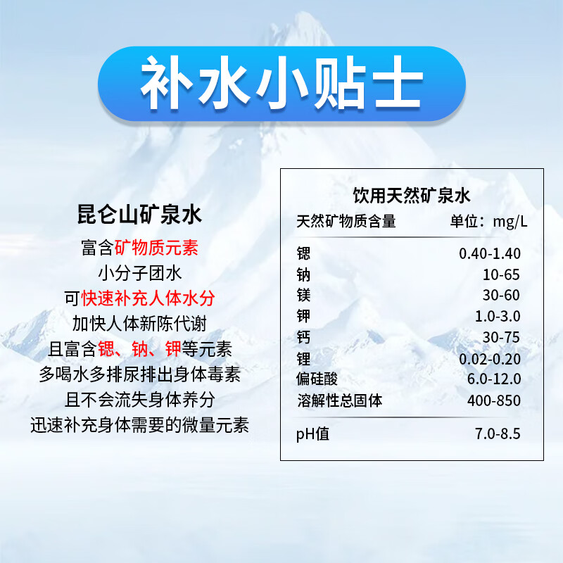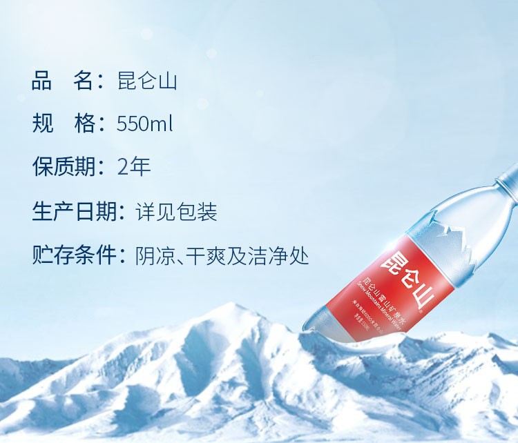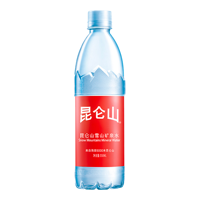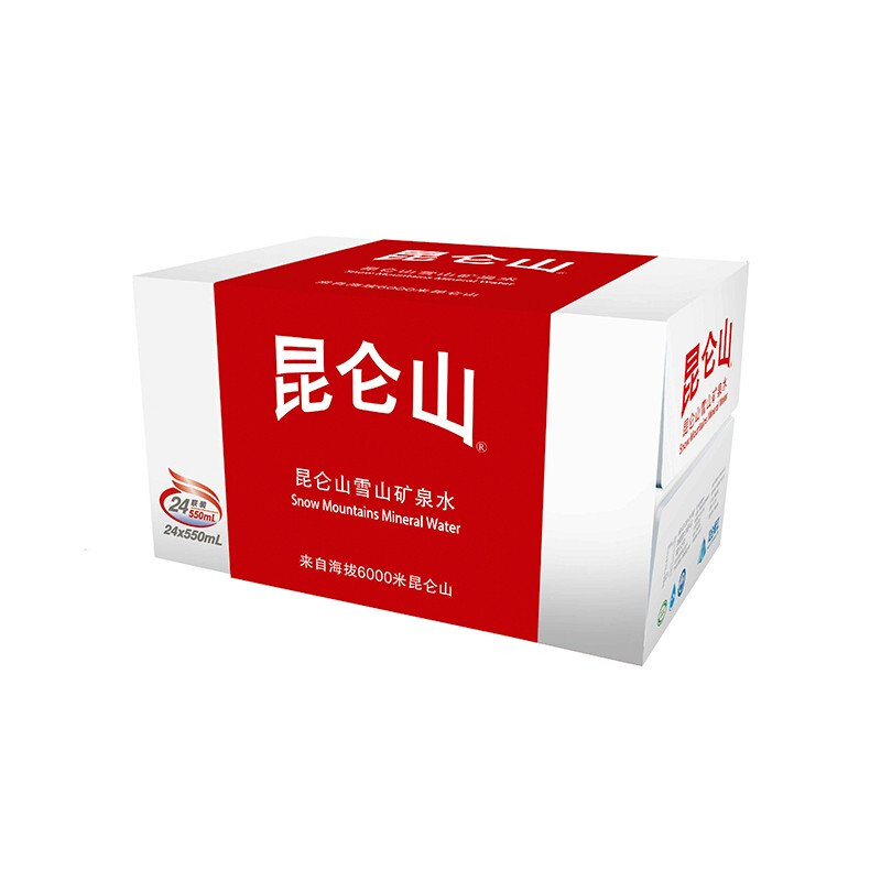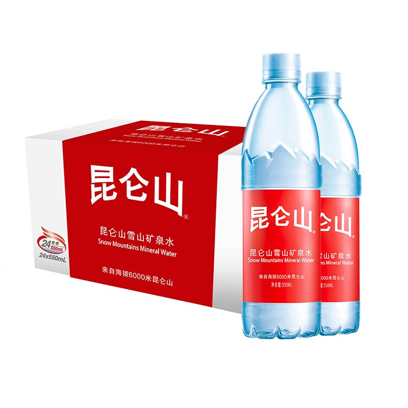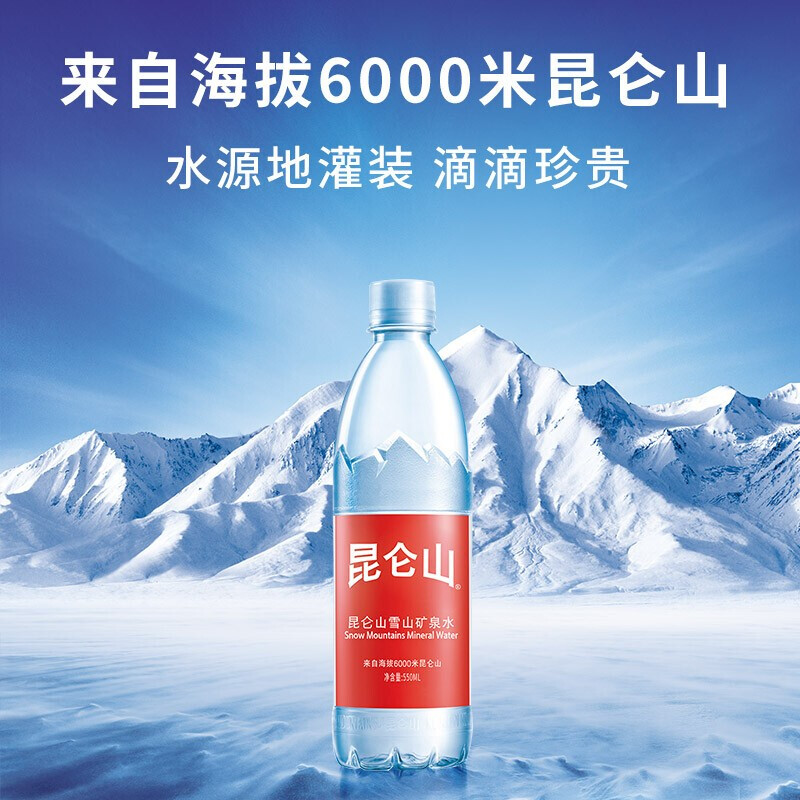 昆仑山雪山矿泉水550mlx24瓶整箱装天然弱碱水高端饮用水家庭办公矿泉水 自营