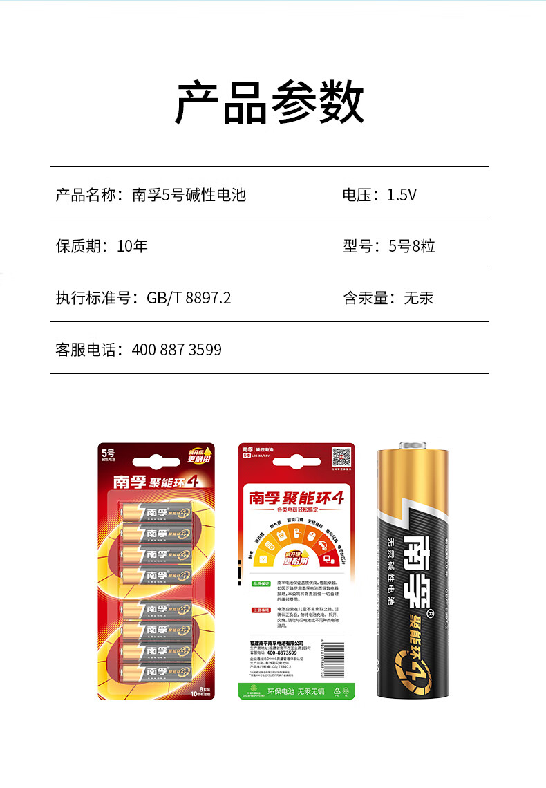 南孚 碱性电池聚能环 5号碱性电池8节 聚能环电量提升30% 自营