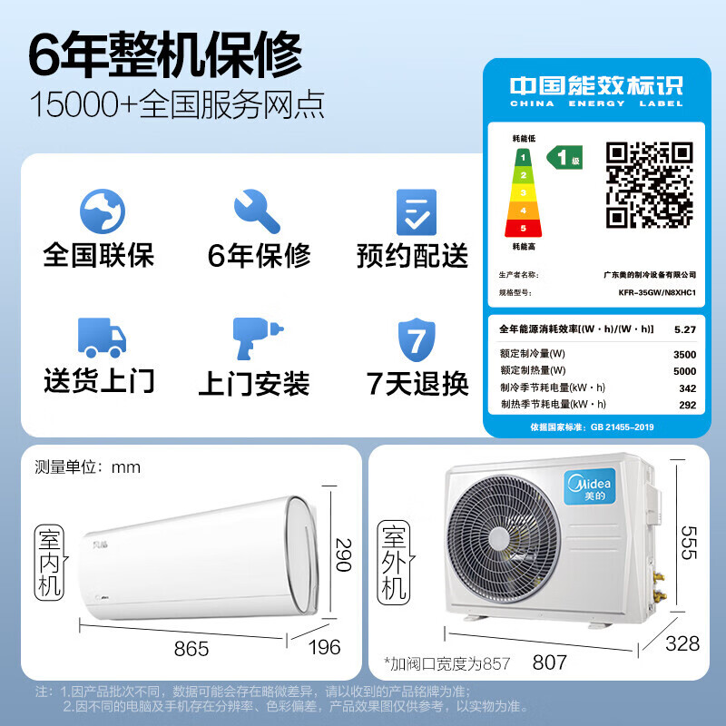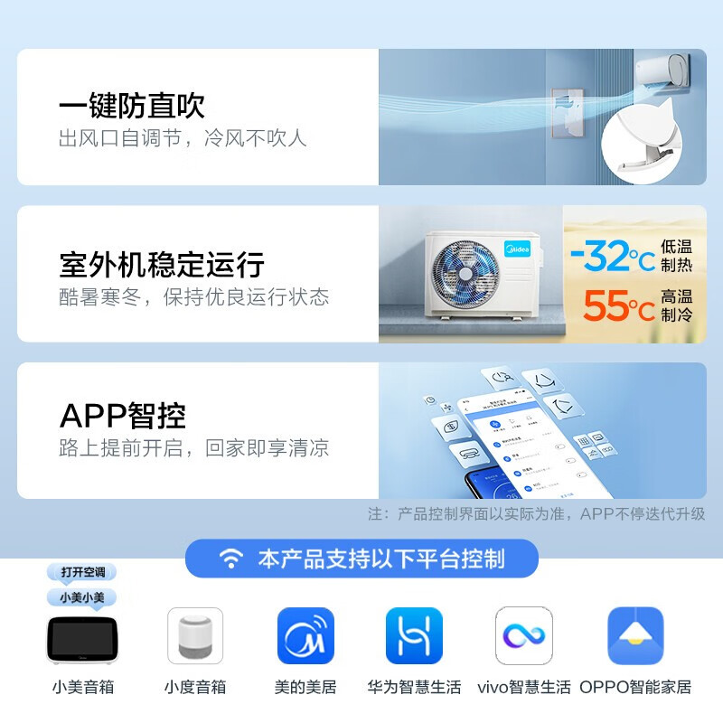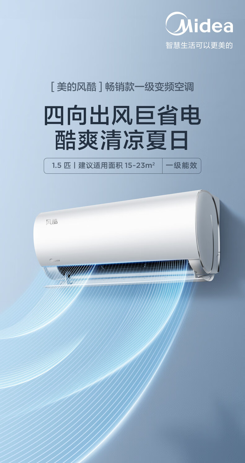 ¥2699.00美的(Midea) 1.5匹 风酷 新一级能效 变频冷暖 自清洁 壁挂式空调挂机 京东小家 KFR-35GW/N8XHC1