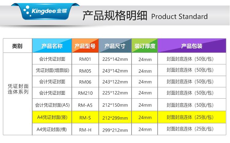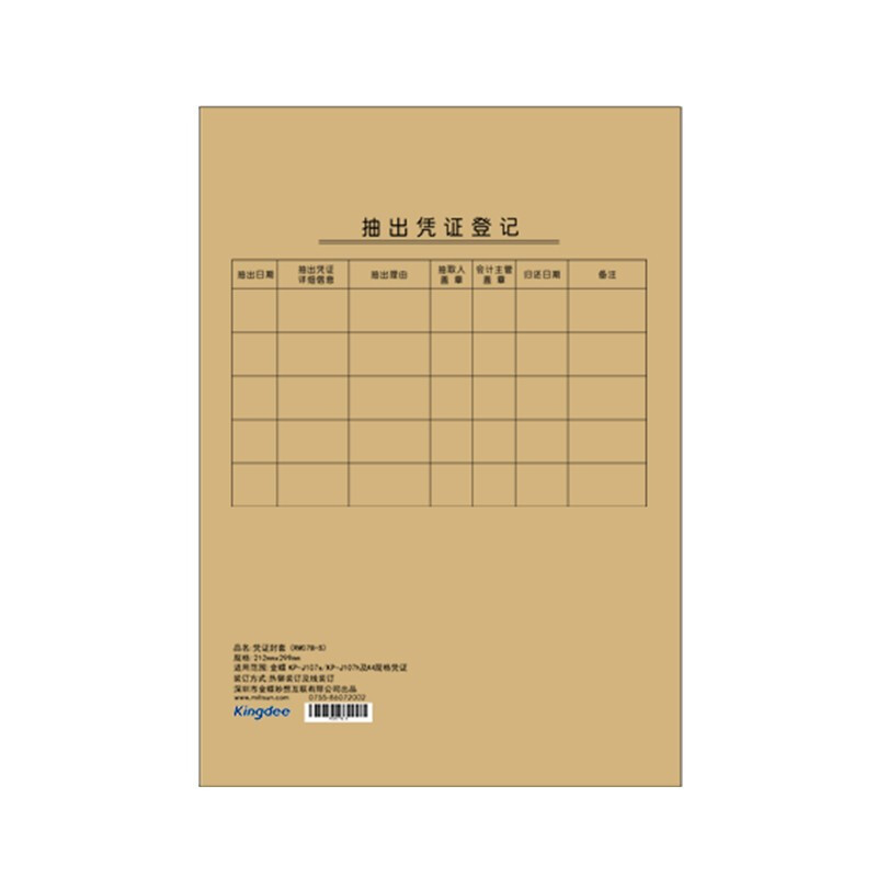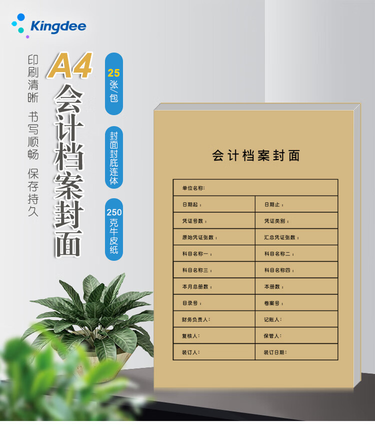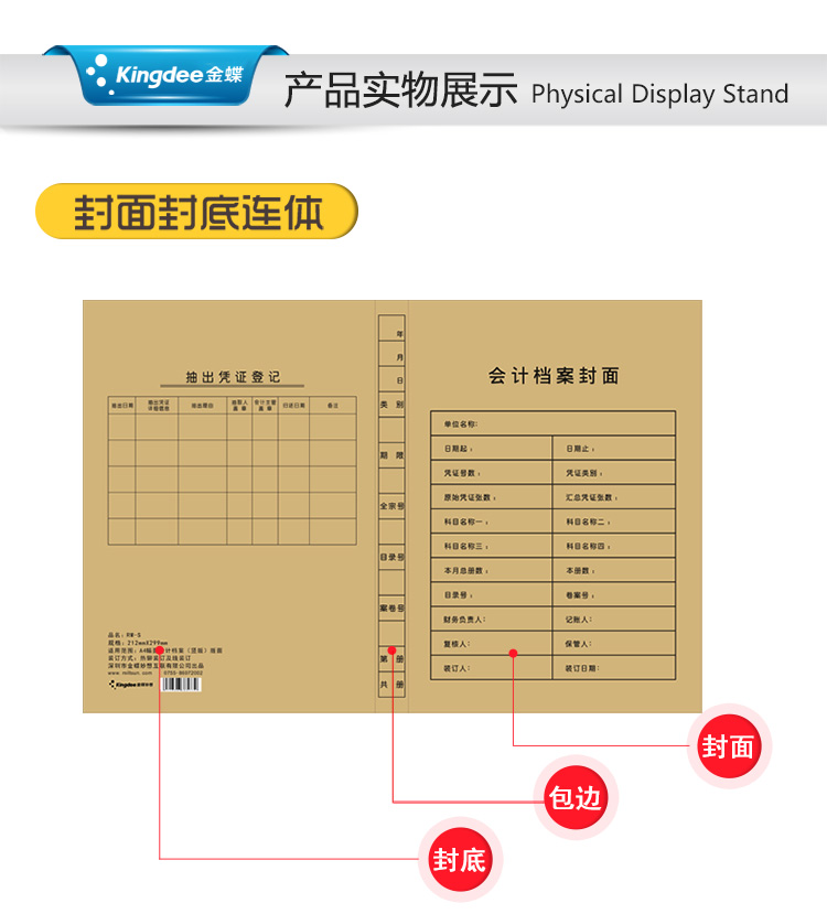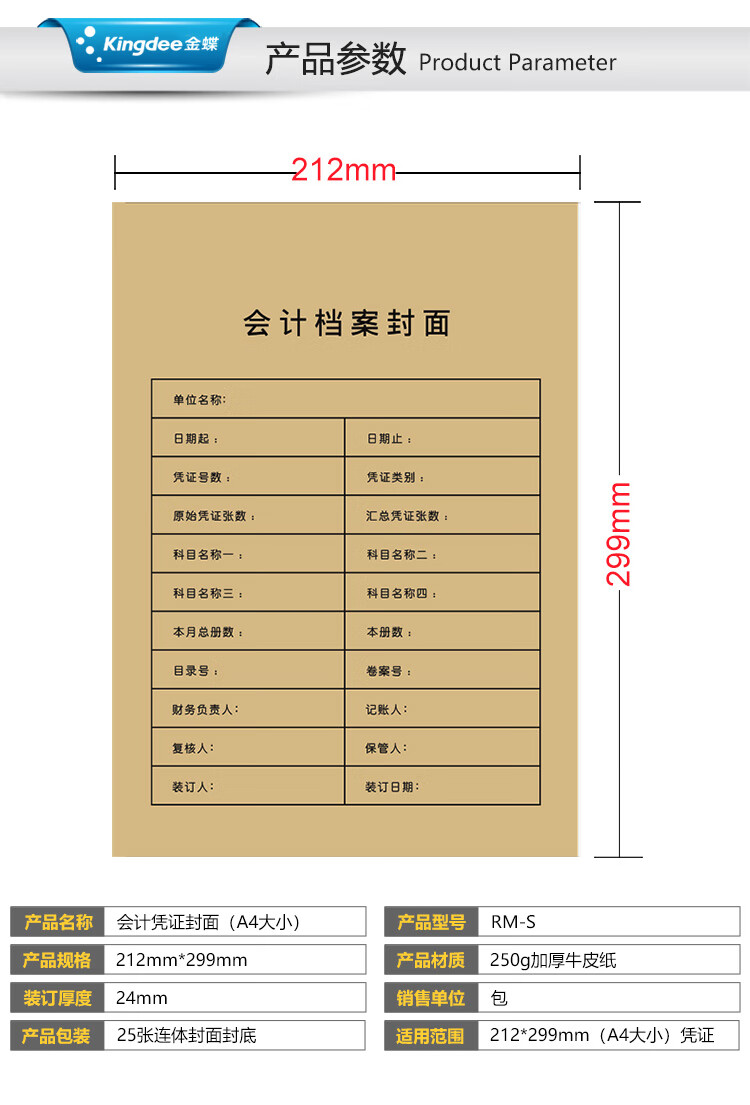 金蝶 kingdee 记账凭证封面RM-S牛皮纸封面 装订档案封皮 A4凭证封面212*299mm 自营