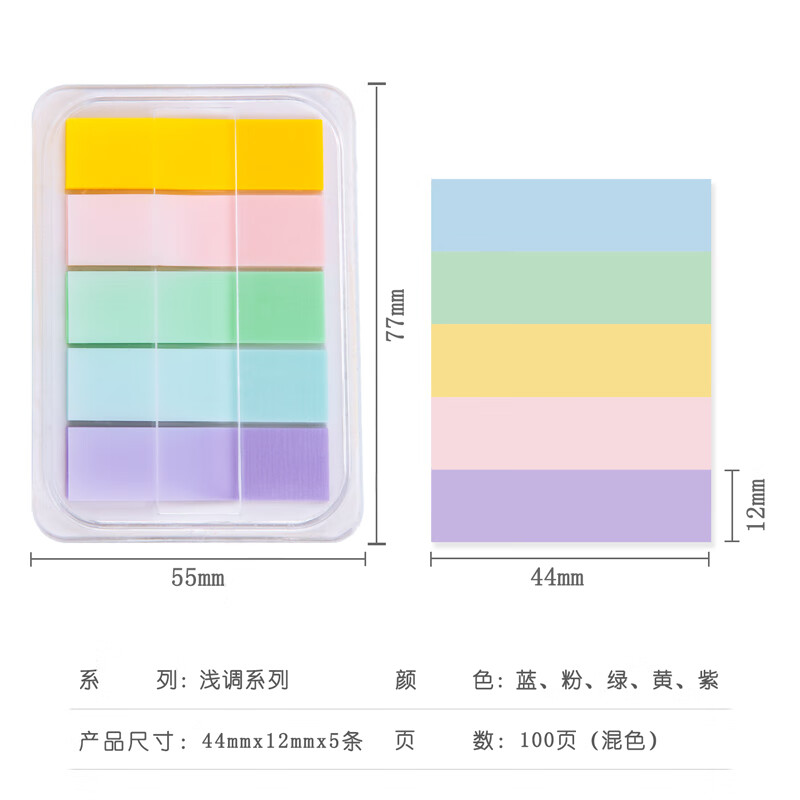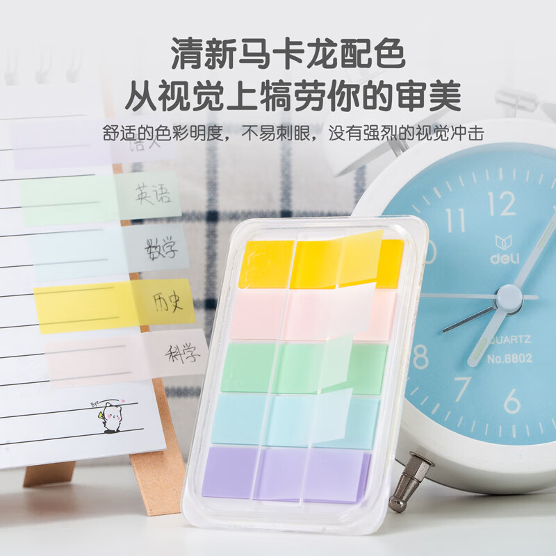 得力(deli)100张5色浅调系列淡彩荧光膜指示标签贴 44*12mm抽取式便利贴便签条记事贴开学必备 21606 自营