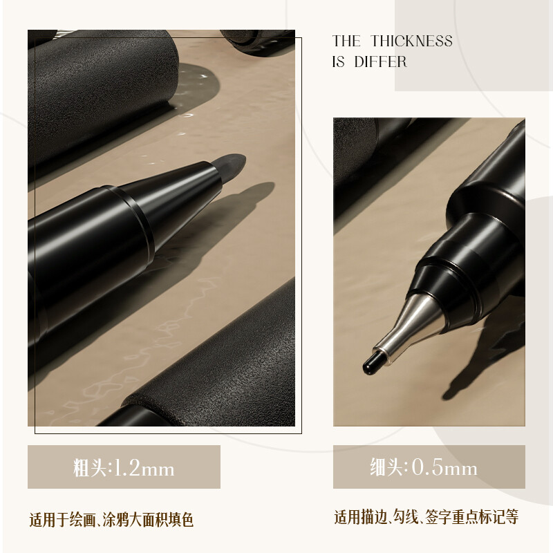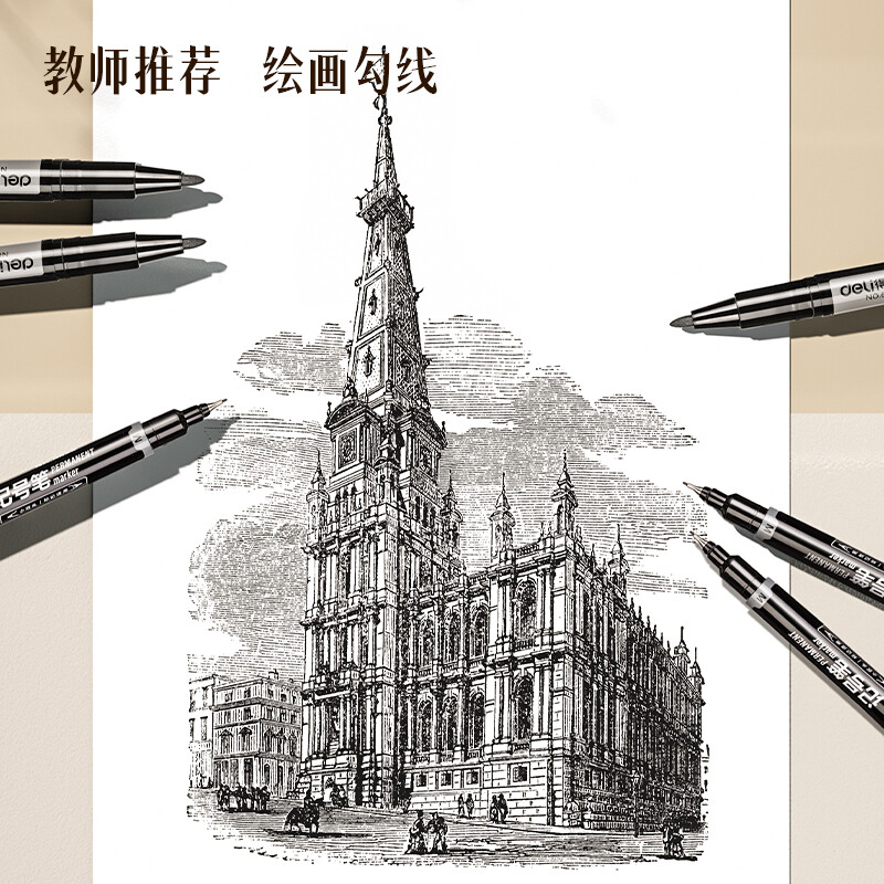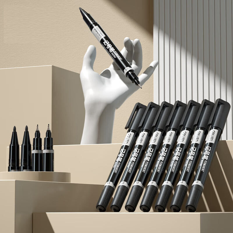 得力(deli) 小双头多用记号笔签字笔 勾线笔会议笔马克笔 双头勾线笔儿童学生 12支/盒 黑色 6823 自营