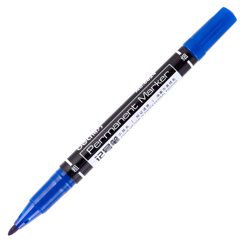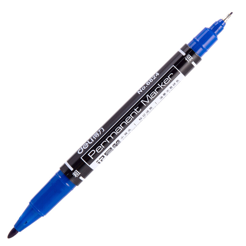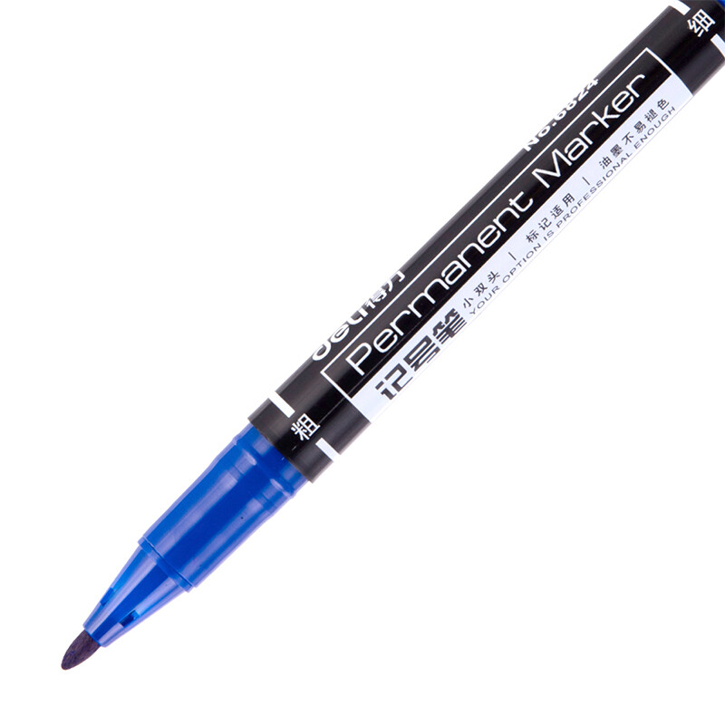 得力(deli)记号笔双头多用油性记号笔签字笔 儿童绘画勾线笔盒装 6824 蓝色 12支/盒 自营