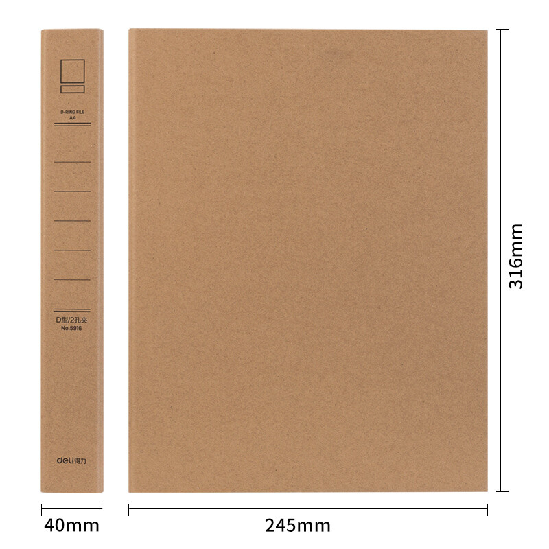 得力(deli)A4牛皮纸文件夹 二孔D型活页夹 打孔文件夹资料收纳夹子 文件收纳办公用品5916 自营
