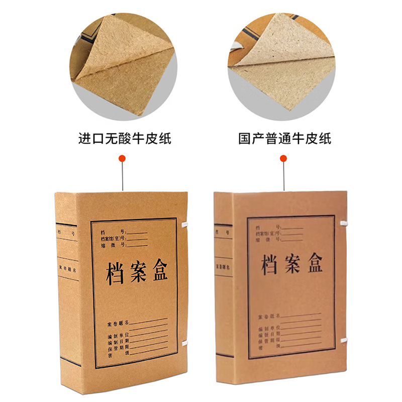 金文誉 a4文件盒纸质牛皮纸档案盒凭证资料单据收纳盒 6cm进口无酸纸背宽(10个装) 自营