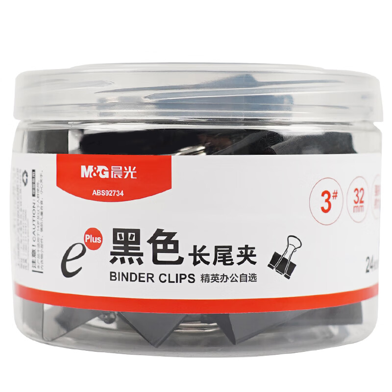 晨光(M&G)文具3#32mm 24只/罐 黑色长尾夹 中号金属票据夹 Eplus系列办公燕尾夹 ABS92734 自营