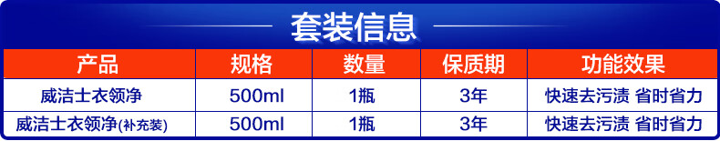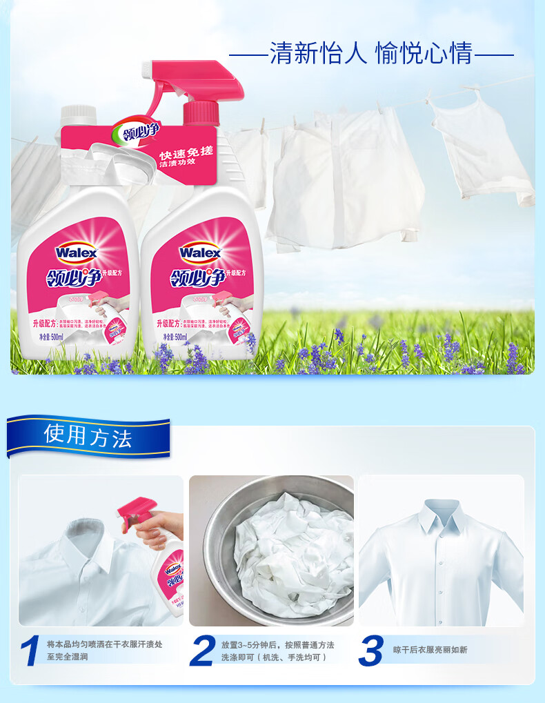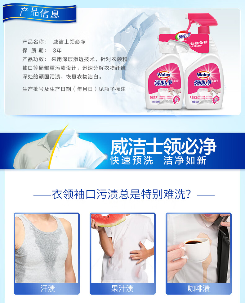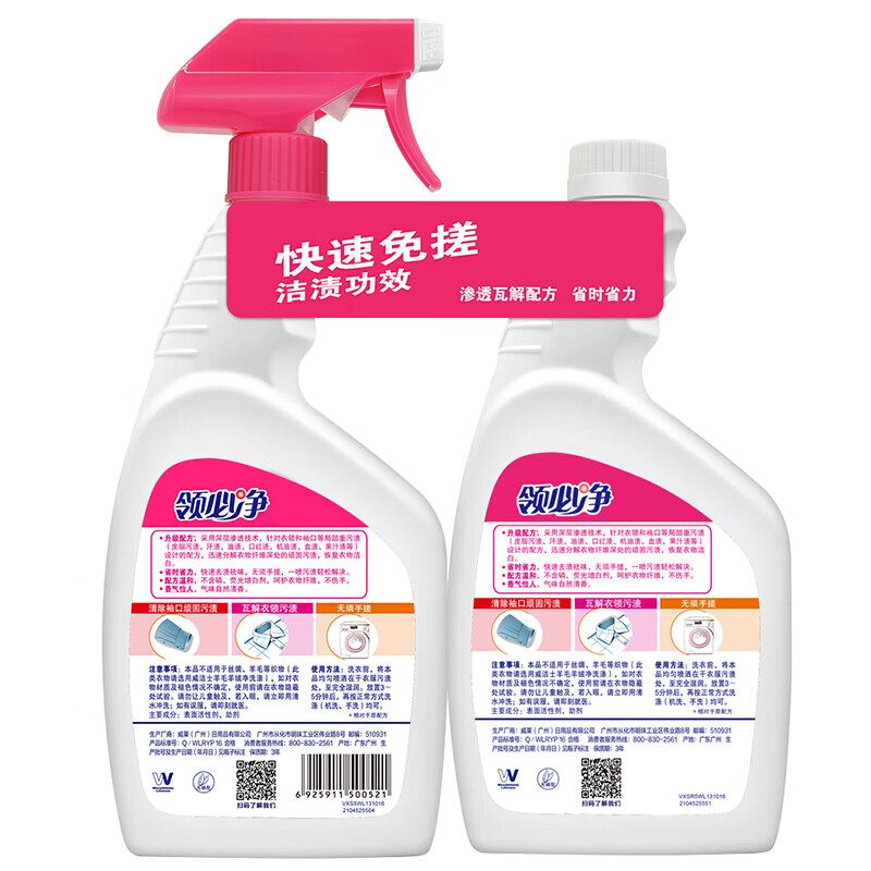 威洁士 衣领净领必净500ml+补充装500ml 衣领袖口清洗剂 自营