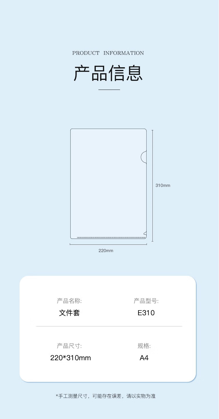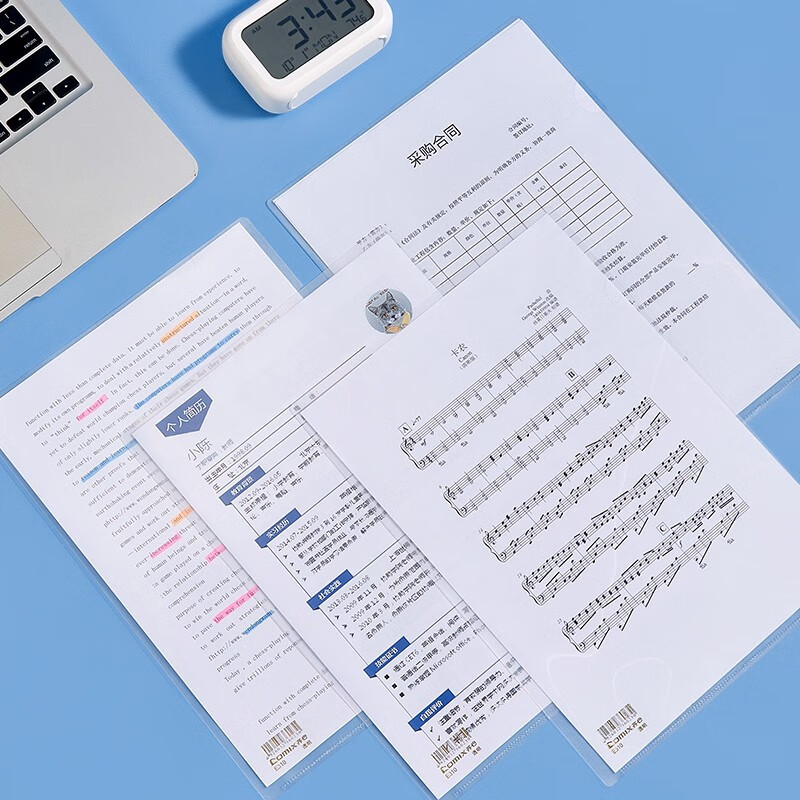 齐心(COMIX) A4二页文件套 透明单片夹 L型文件袋 全白透明 E310 10个装 透明白 自营