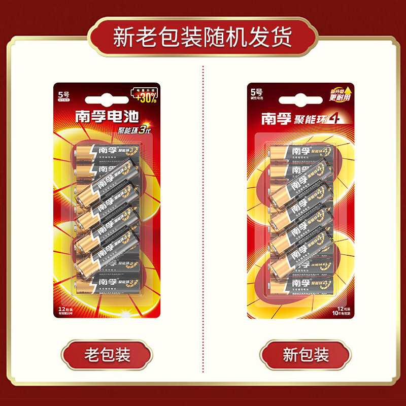 南孚 5号电池12粒 五号碱性 聚能环4代 适用耳温枪/血糖仪/无线鼠标/遥控器/血压计/挂钟/血氧仪等 自营