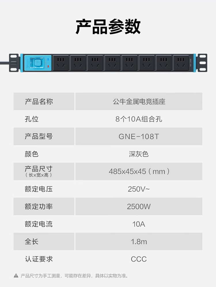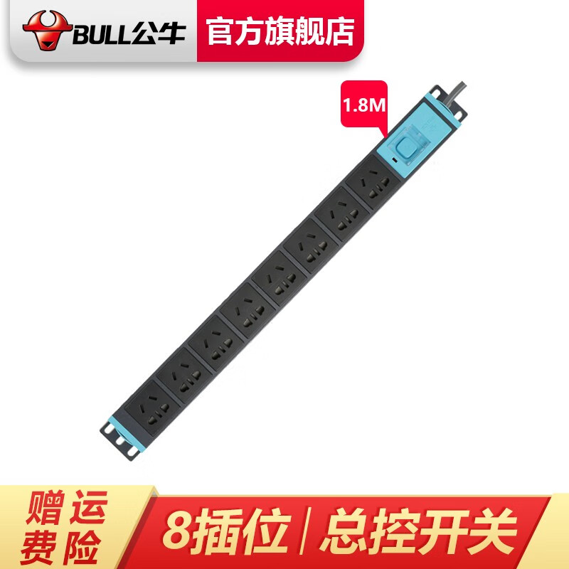 公牛(BULL) PDU机柜插座/插排/排插/ 10A【八位总控 全长1.8米】1080 自营