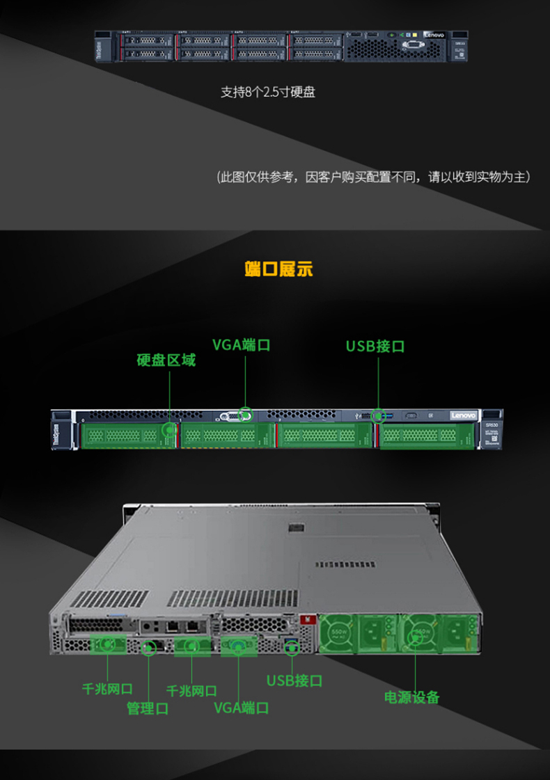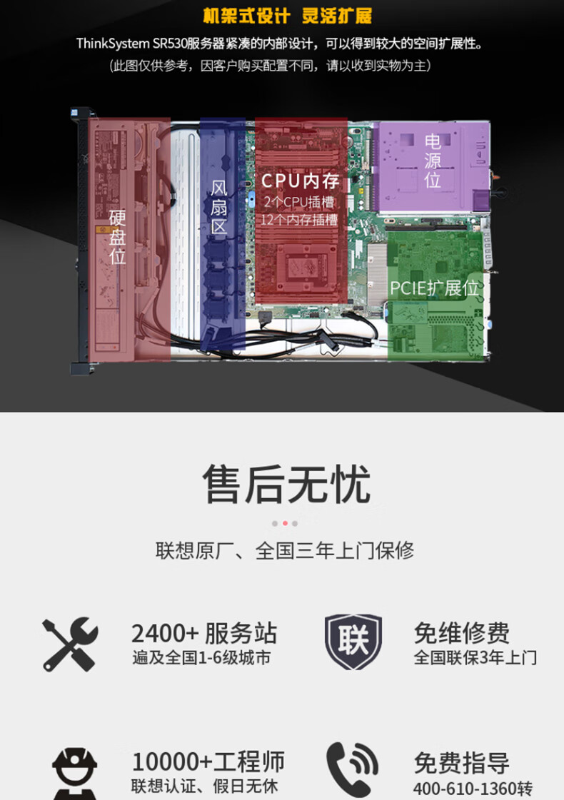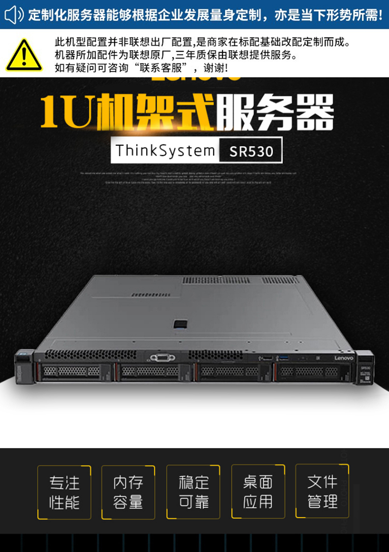 联想(Lenovo)ThinkSystem SR530丨SR570 1U机架式服务器主机 1颗铜牌3204 6核6线程1.9GHz 16G内存 2x1T硬盘 550W 自营