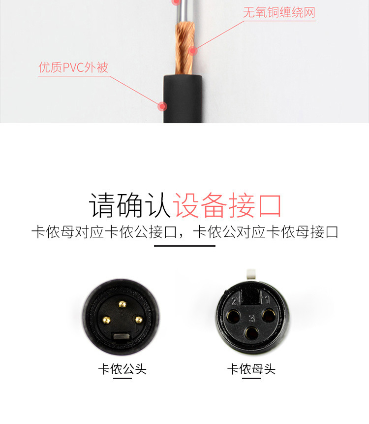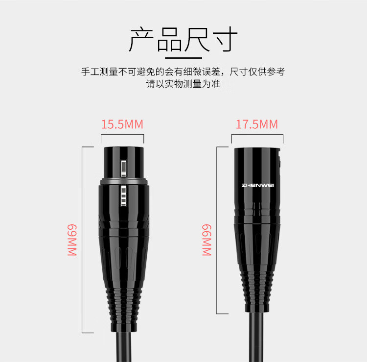 臻威(ZHENWEI)卡侬公对母音频延长线 K歌直播麦克风话筒头线 调音台音响箱功放摄影机平衡卡农线 5M 自营