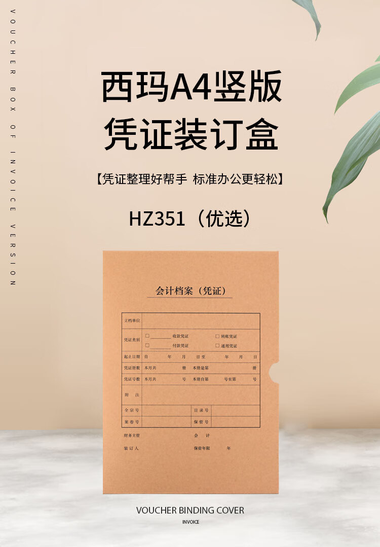 西玛表单 财务会计全A4纸尺寸HZ351 背宽5CM 竖版凭证装订封面盒皮套档案资料盒220*305*50 自营