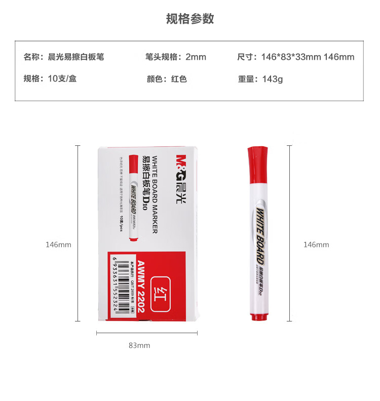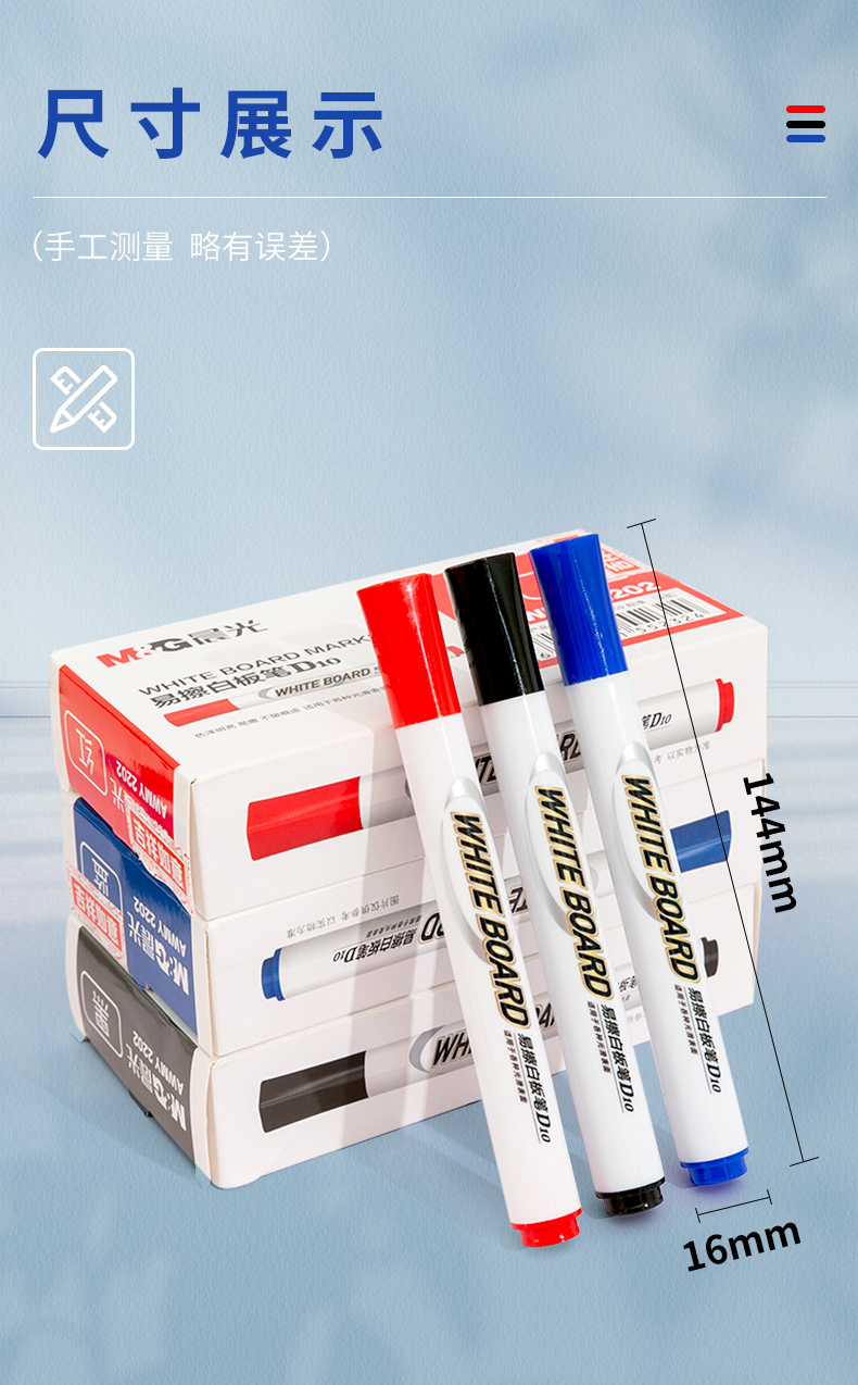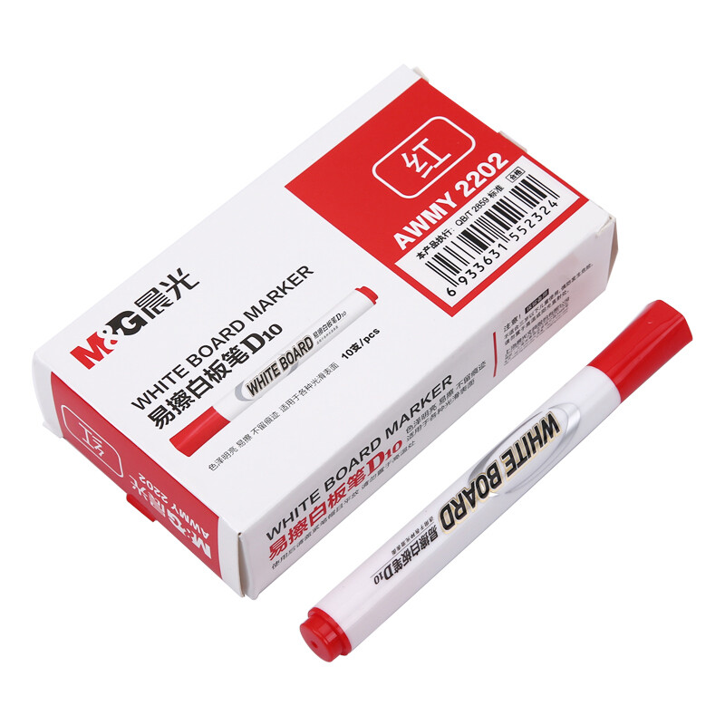 晨光(M&G)文具红色可擦白板笔 单头办公会议笔 易擦记号笔 10支/盒AWMY2202 自营
