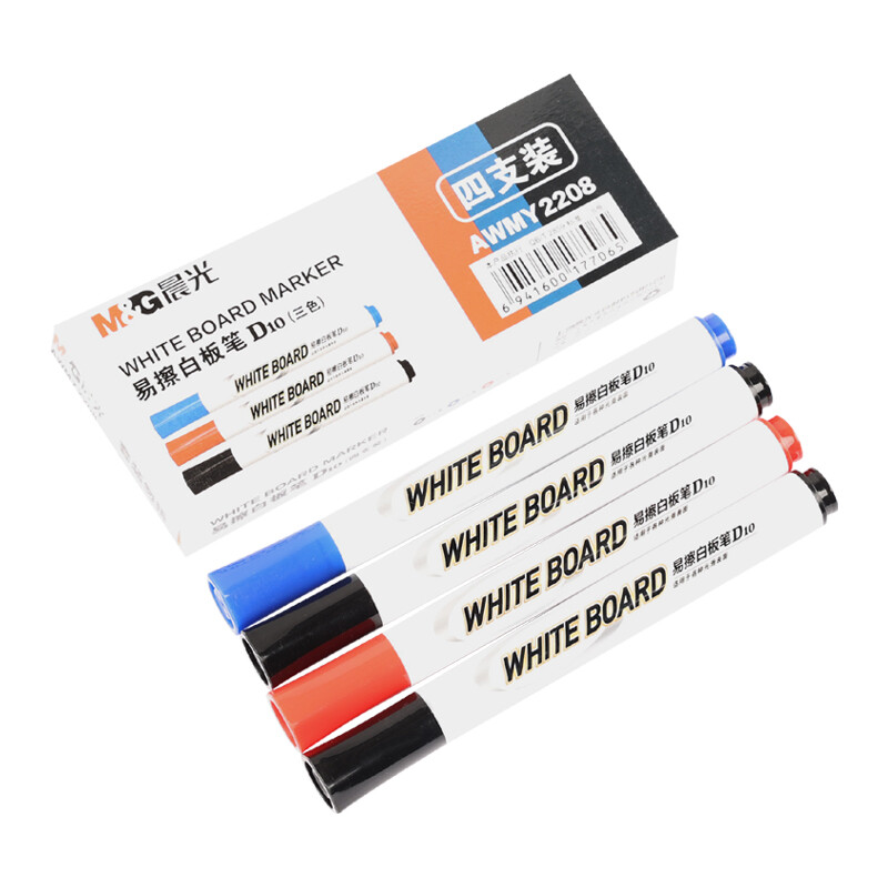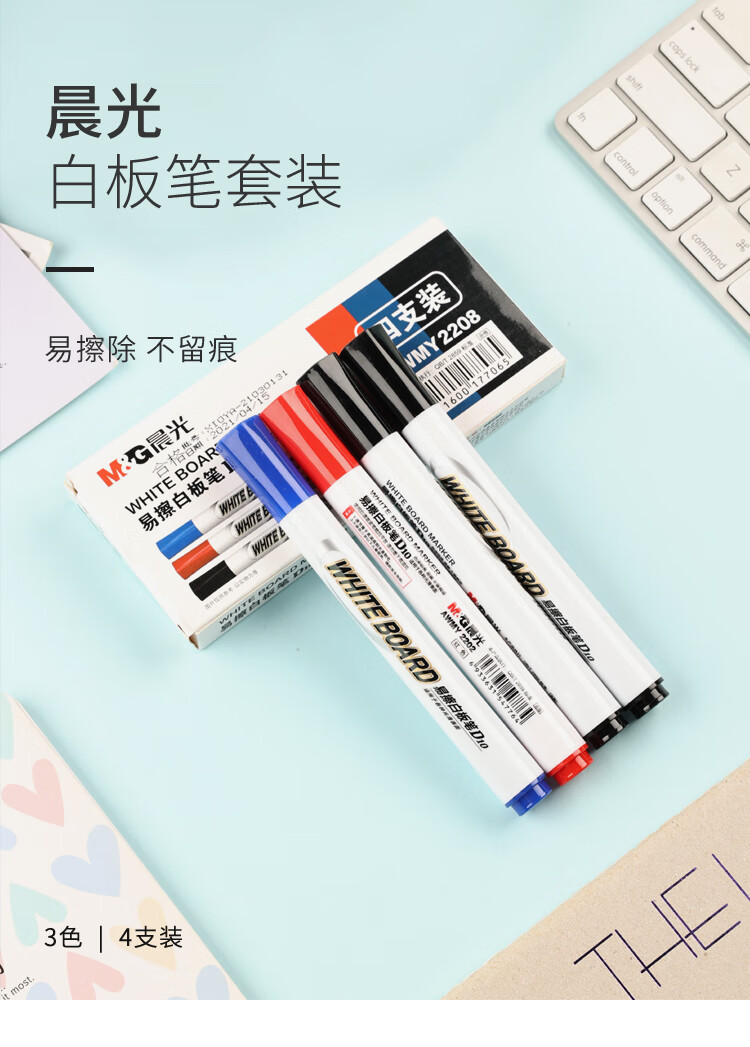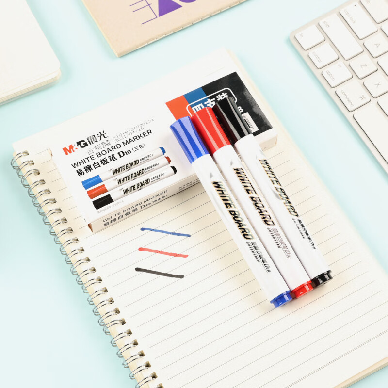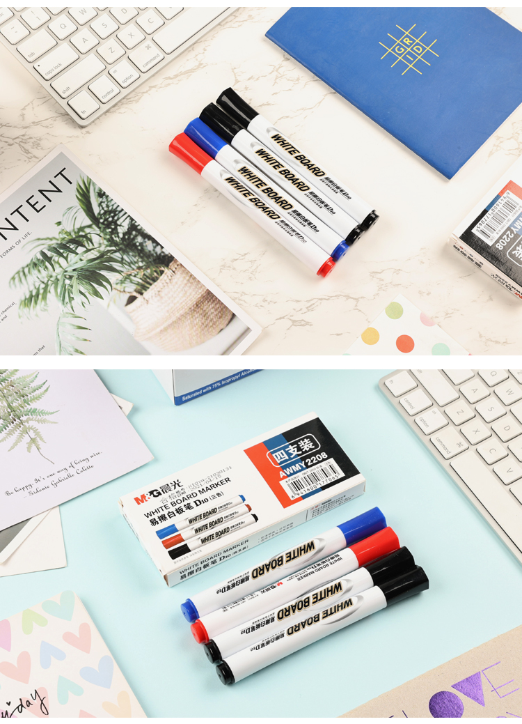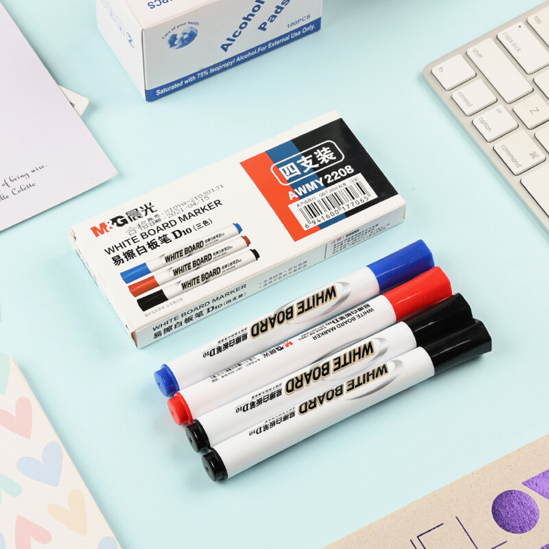 晨光(M&G)文具可擦白板笔套装 单头易擦办公会议笔(2黑+1蓝+1红) 4支/盒AWMY2208 自营
