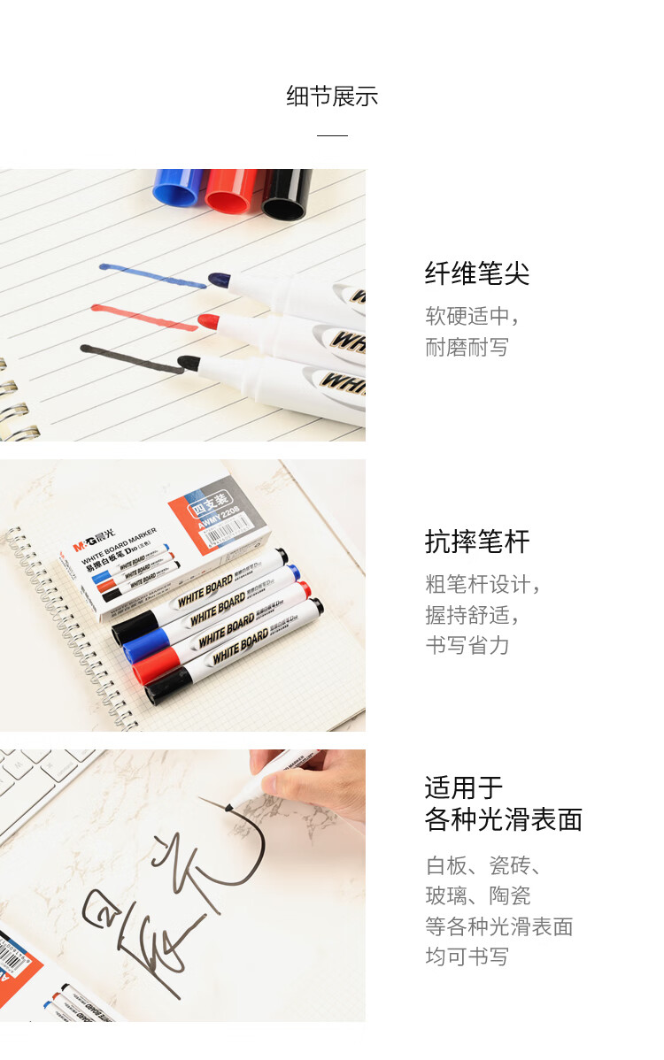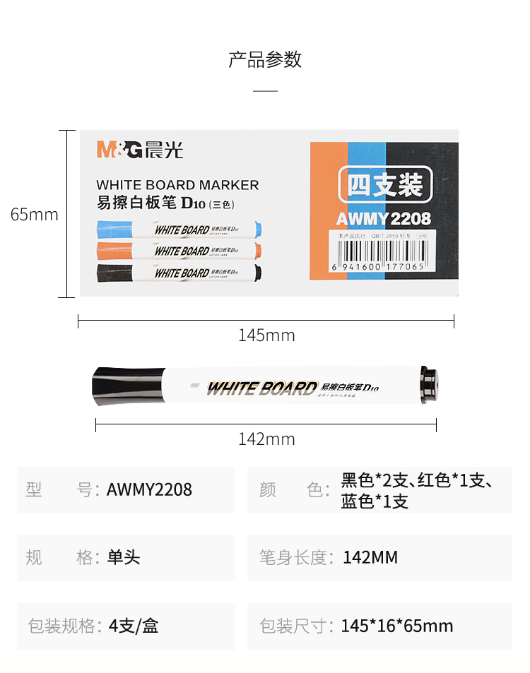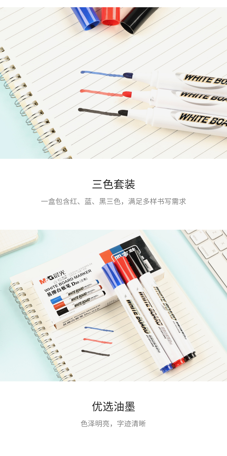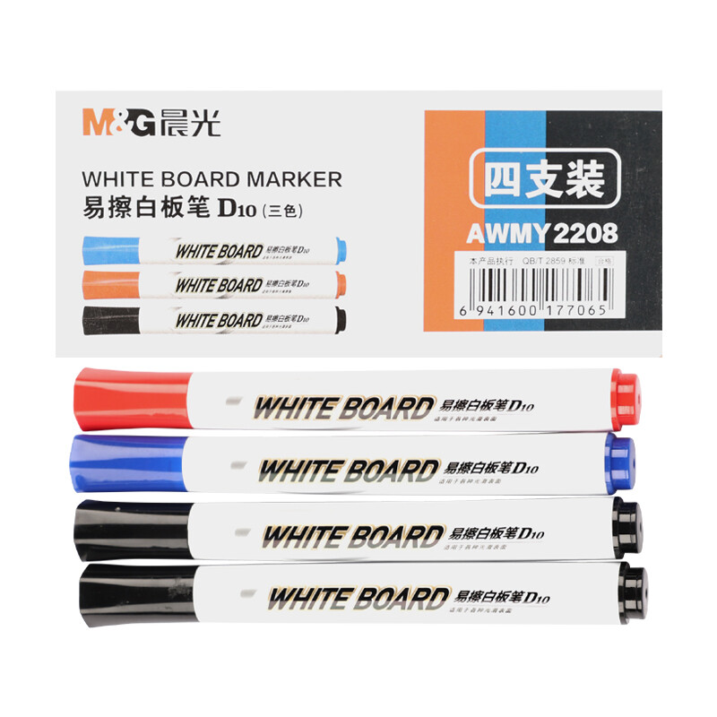 晨光(M&G)文具可擦白板笔套装 单头易擦办公会议笔(2黑+1蓝+1红) 4支/盒AWMY2208 自营