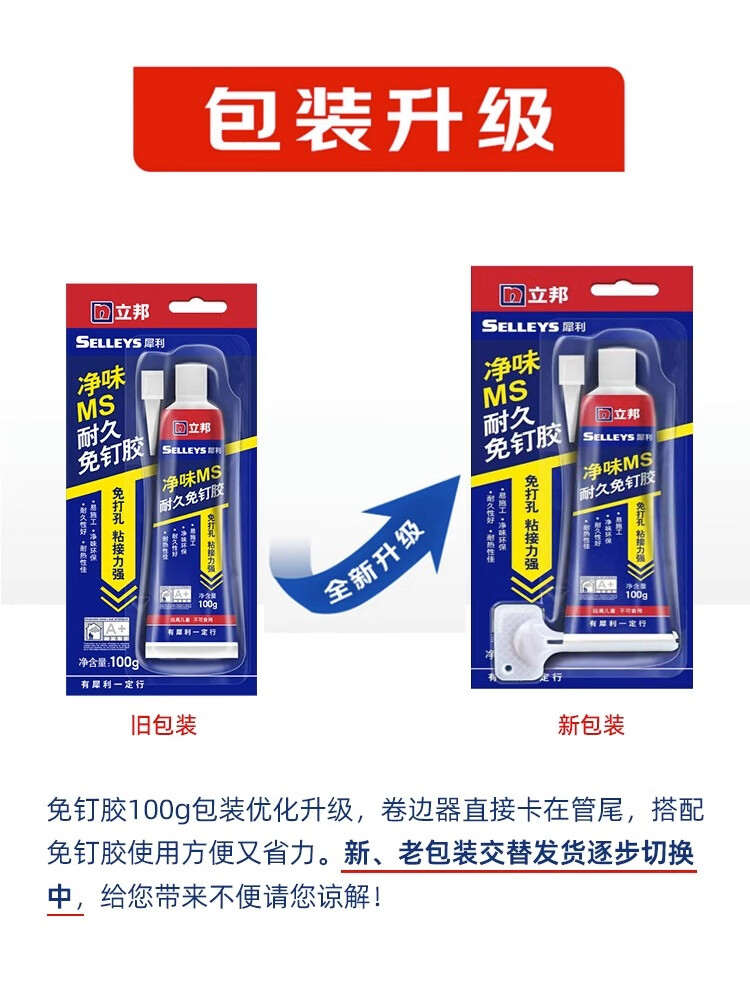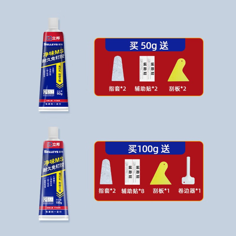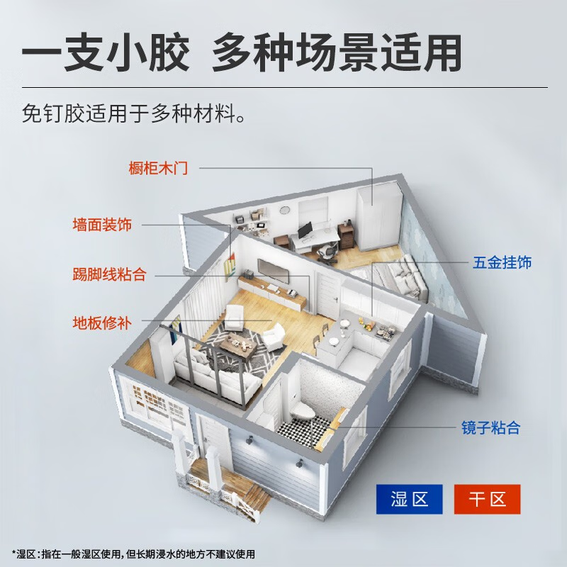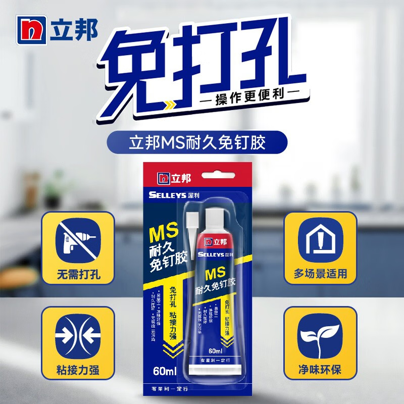 立邦 免钉胶强力胶墙面免打孔粘厨卫五金塑料挂钩木材镜子玻璃胶 临时修补粘合-免钉胶50g 1支 自营