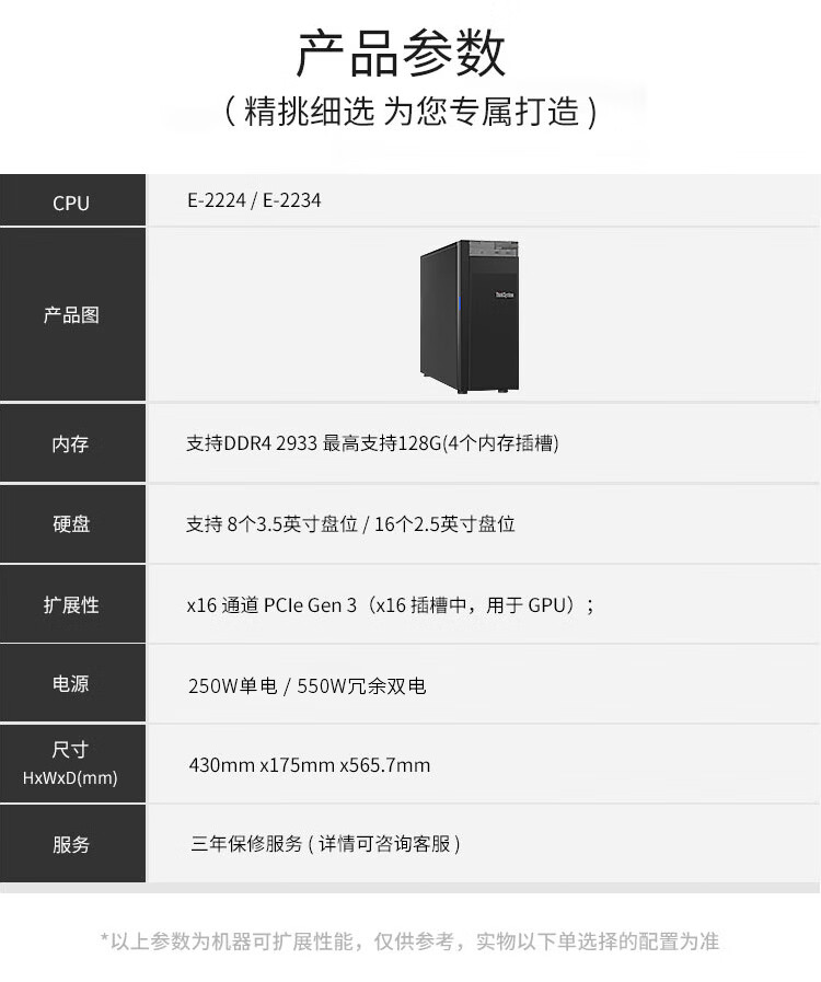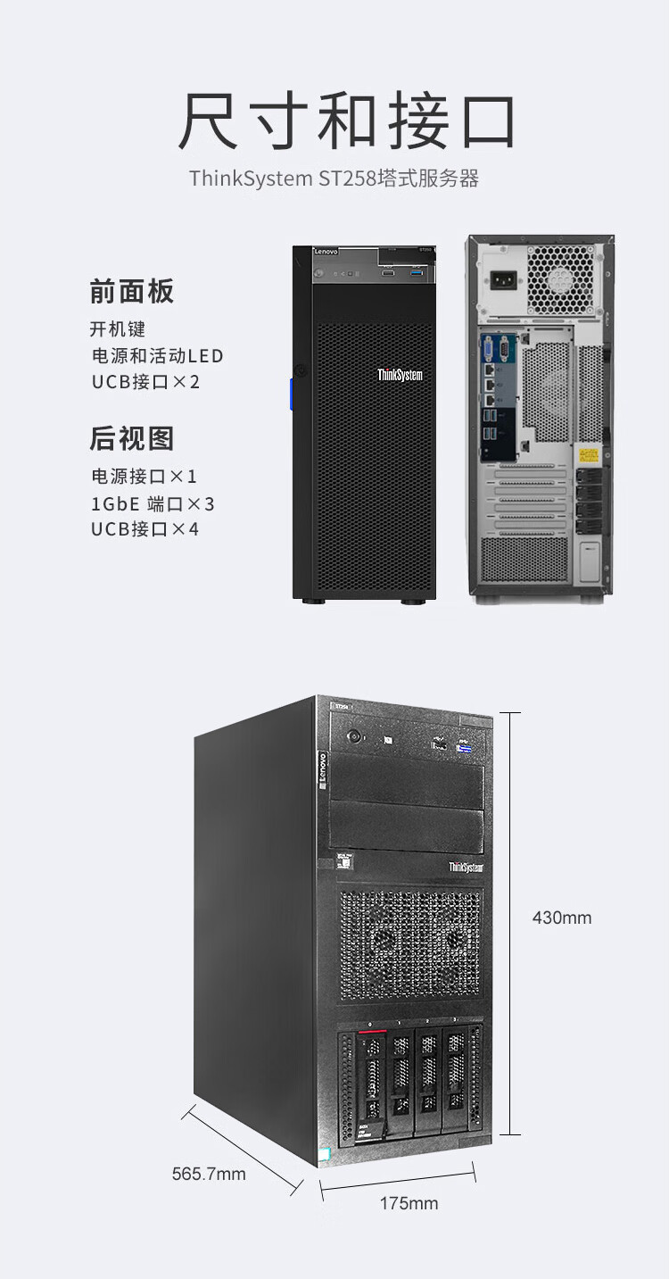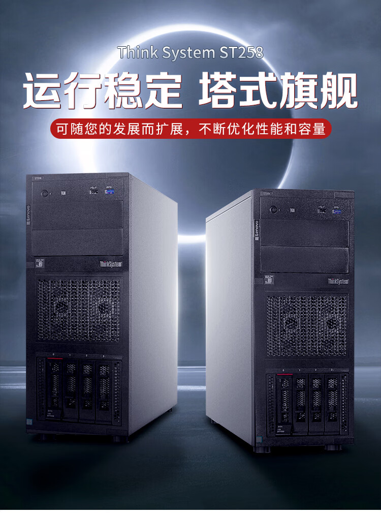 联想ThinkSystem ST258塔式服务器主机至强E-2224 8GB内存 1TB硬盘 自营