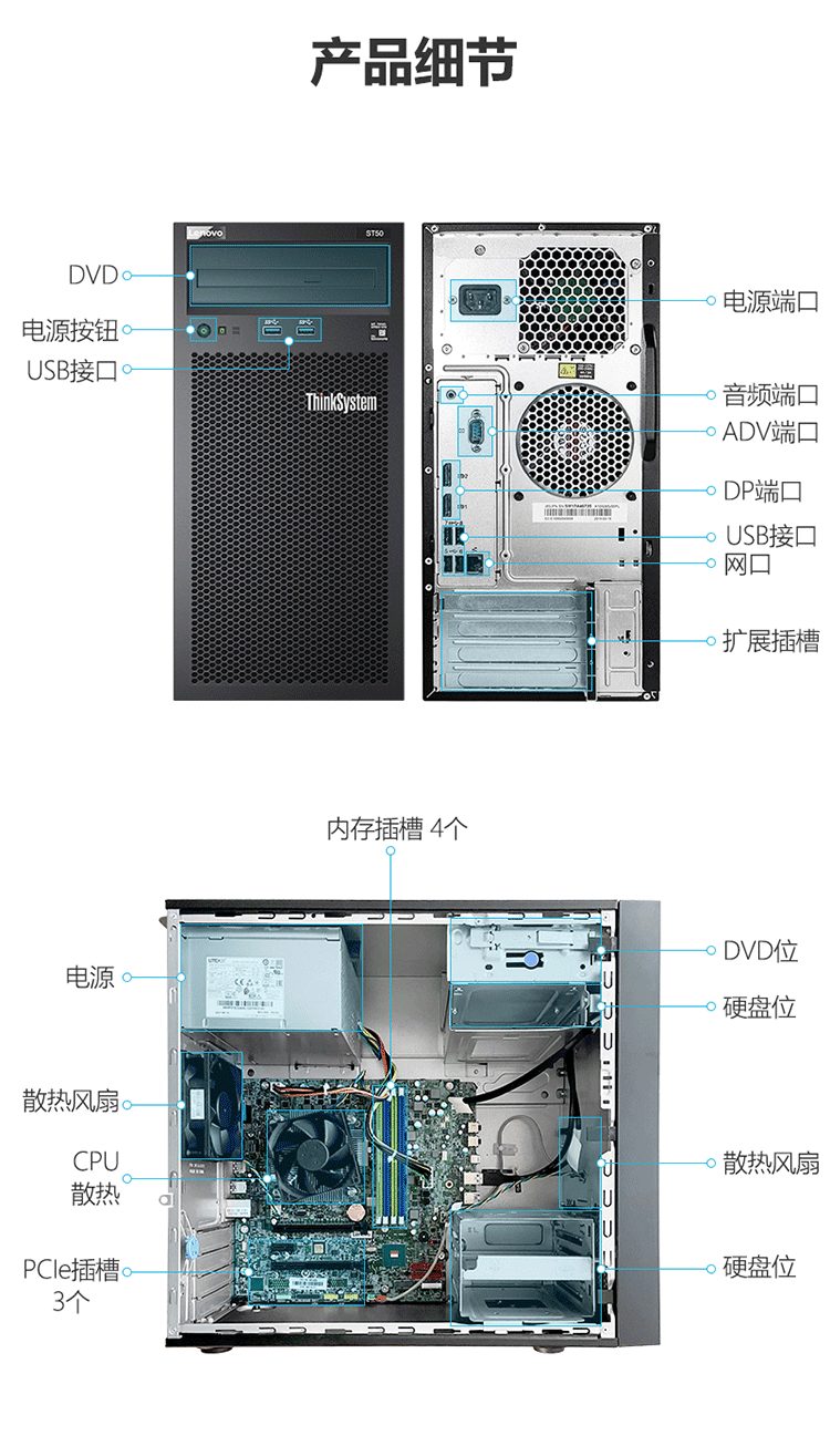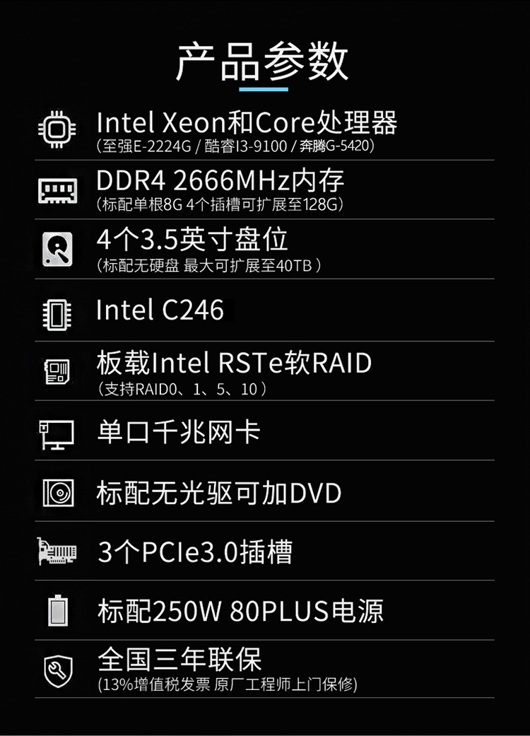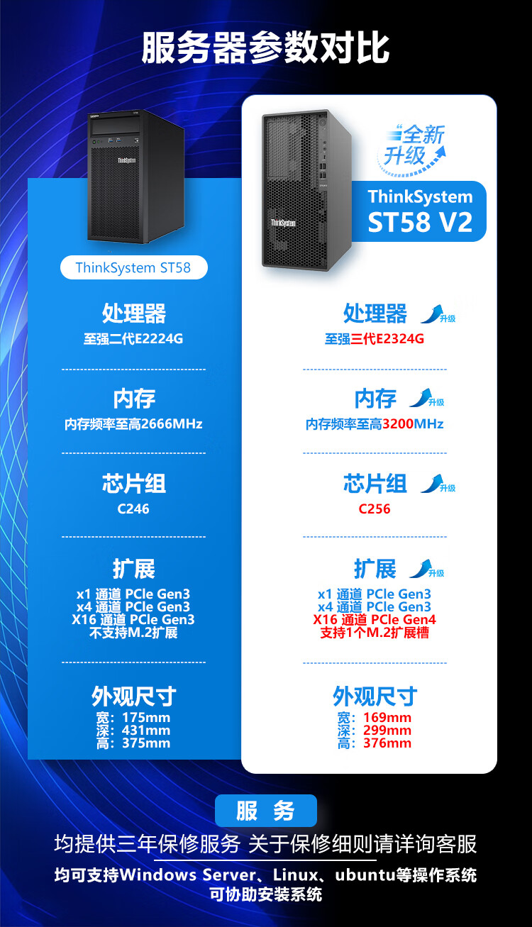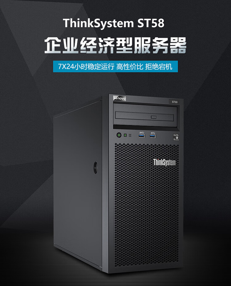 联想(Lenovo)ThinkSystem ST58/ST58V2塔式服务器主机 金蝶用友ERP财务 ST58 酷睿I3-9100四核3.6G 16G内存丨256G固态+2x1TB硬盘 自营
