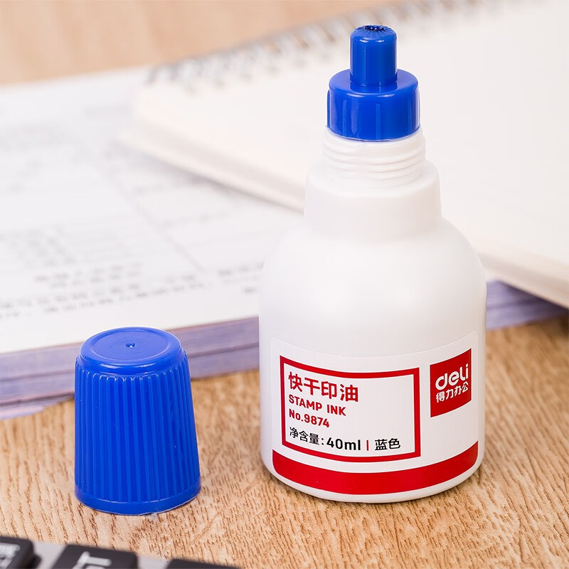 得力(deli)40ml财务印章快干清洁印油印泥 财务用品 办公用品 蓝色9874 自营