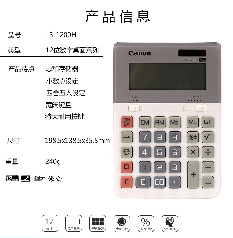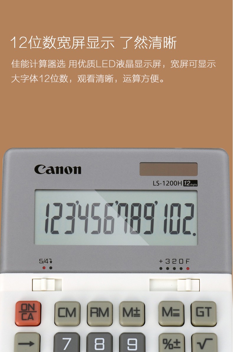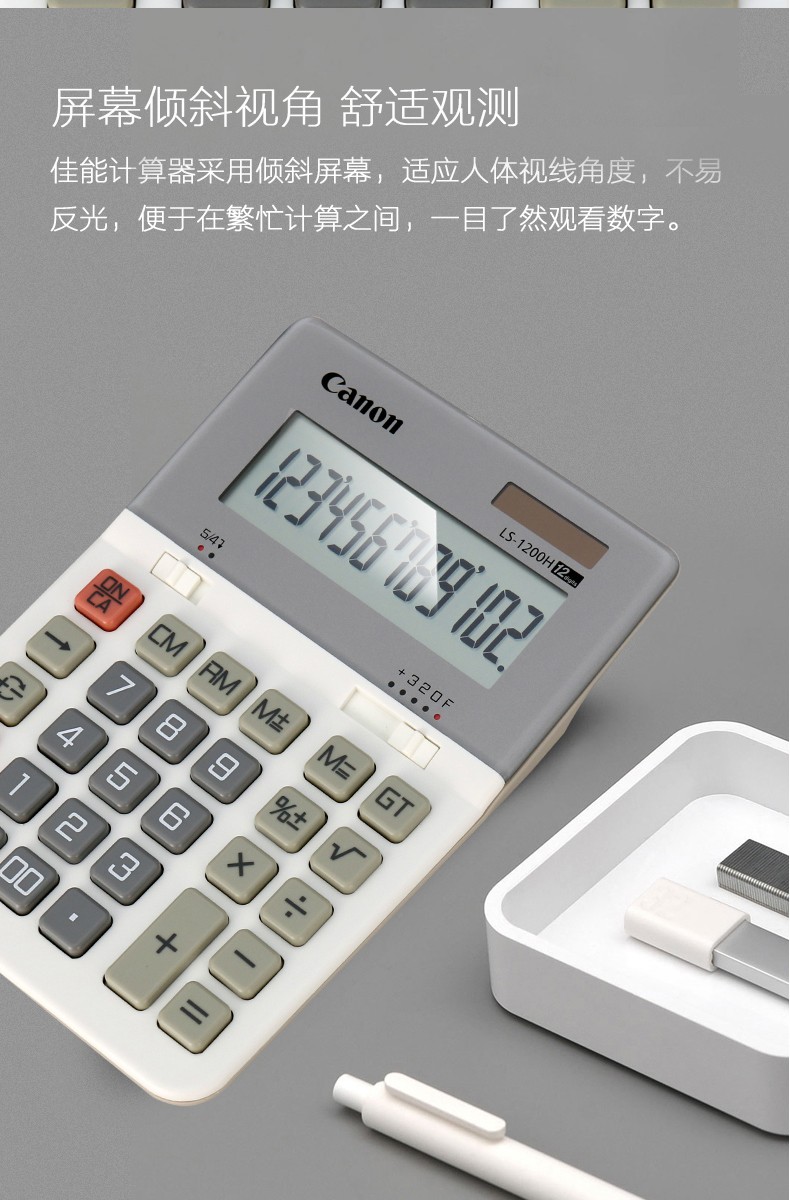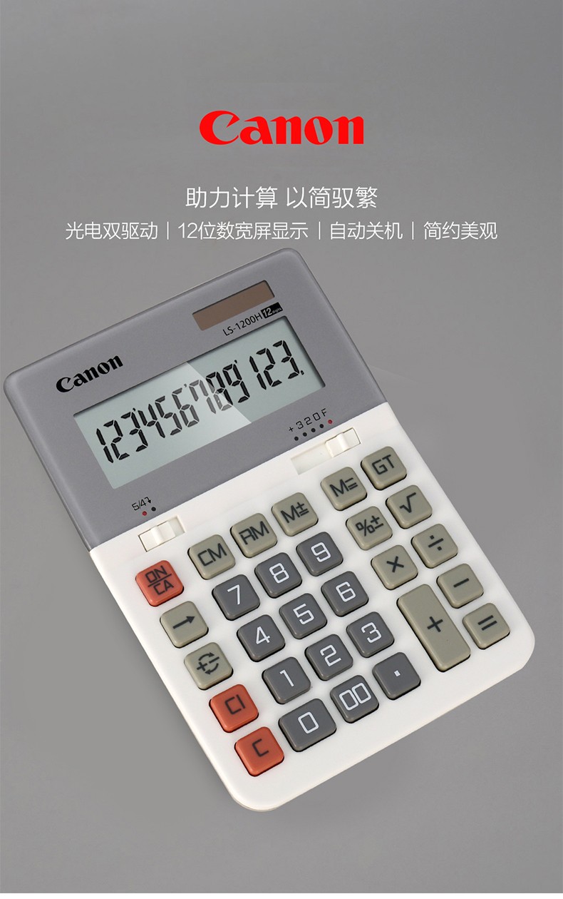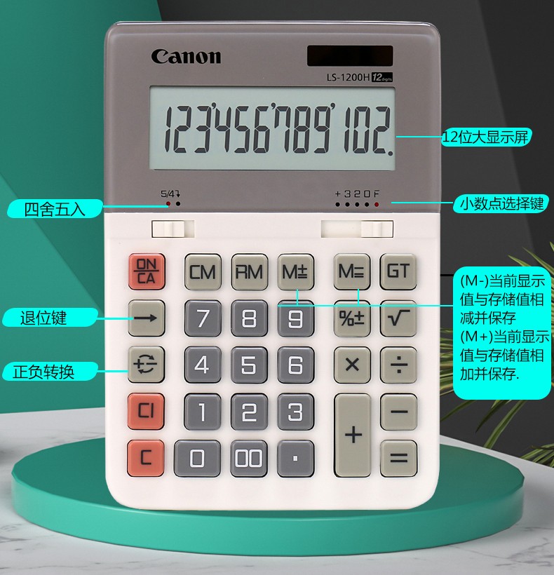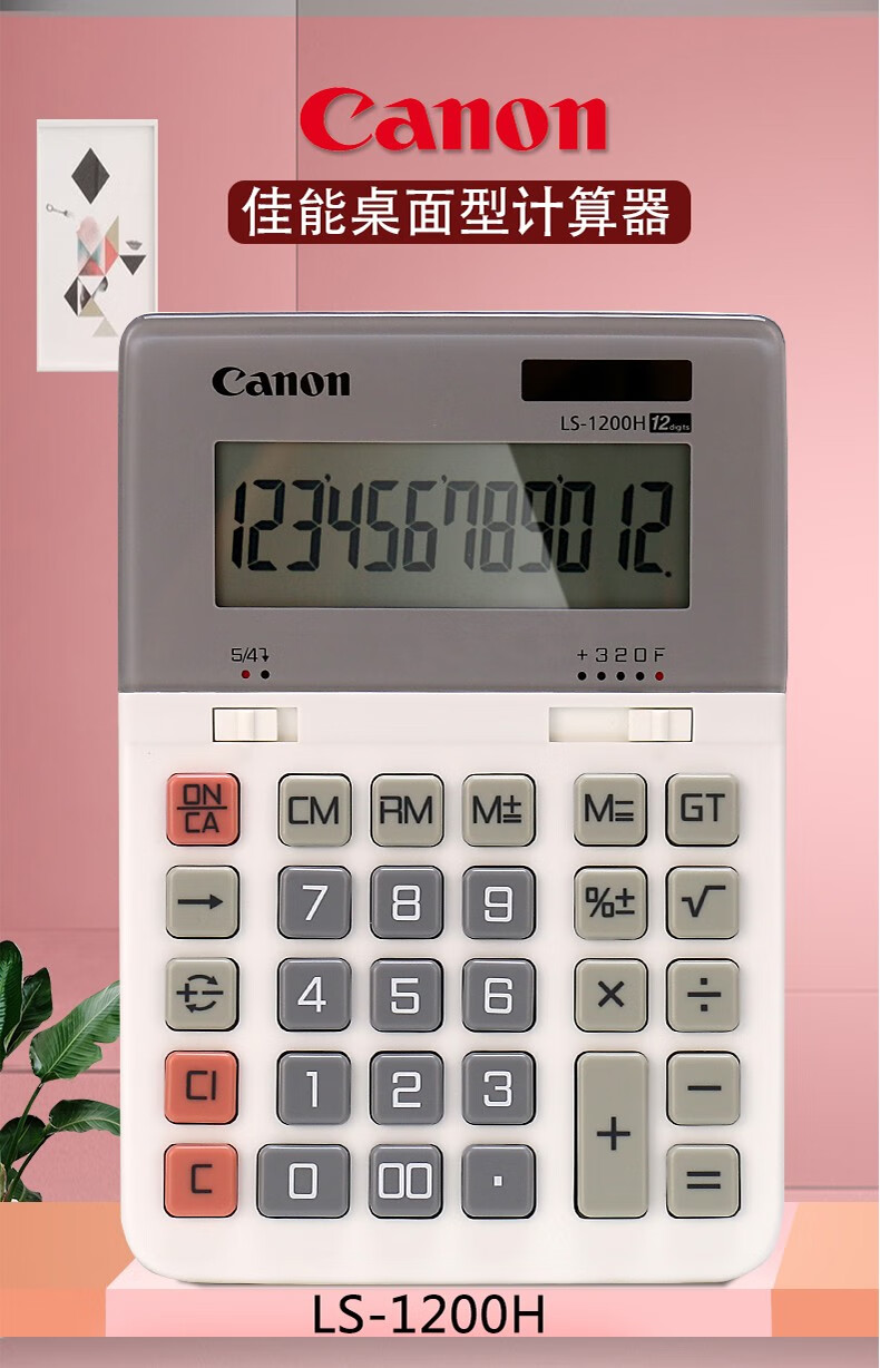 佳能(Canon) LS-1200H电子台式出纳会计财务计算器12位数大号太阳能商务型办公用计算机 自营