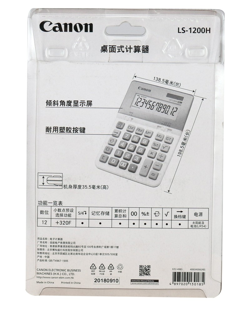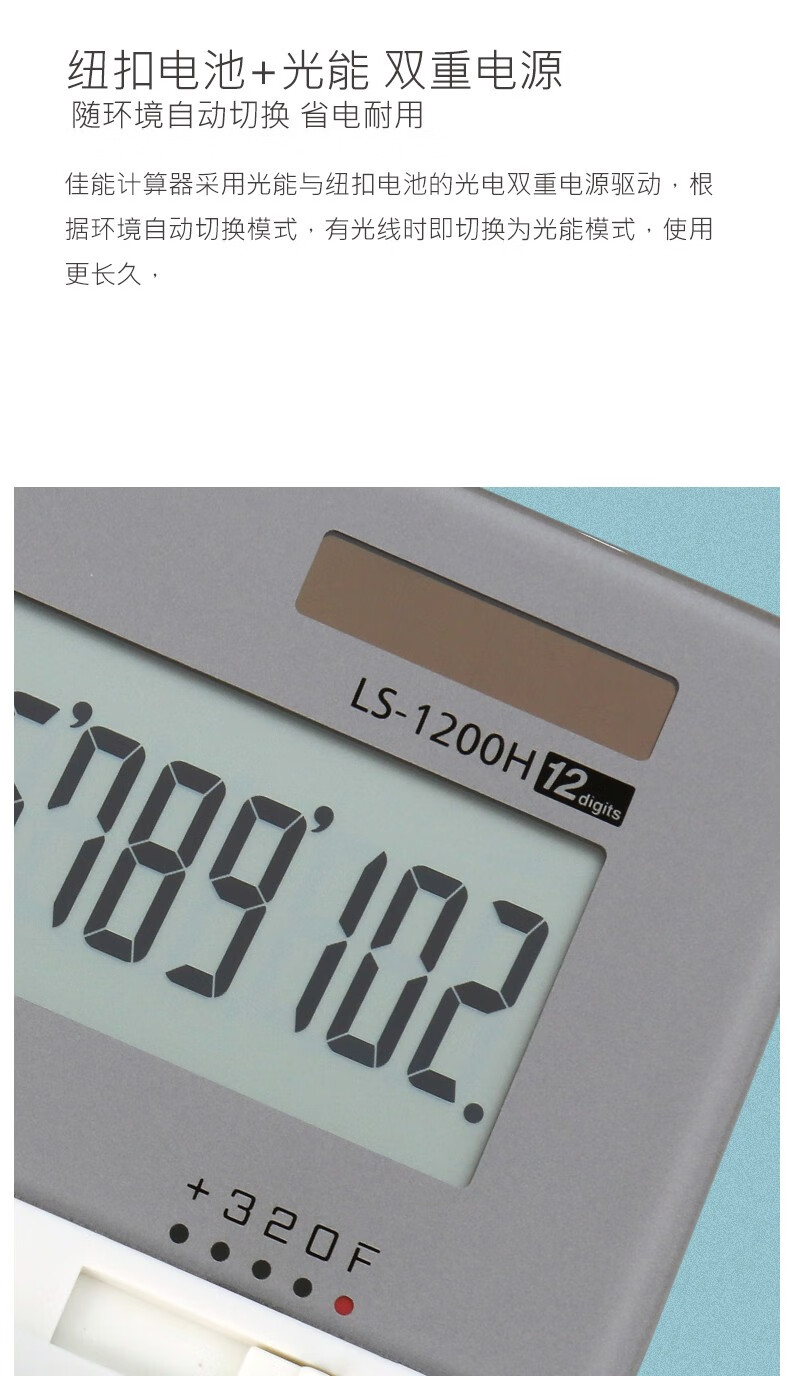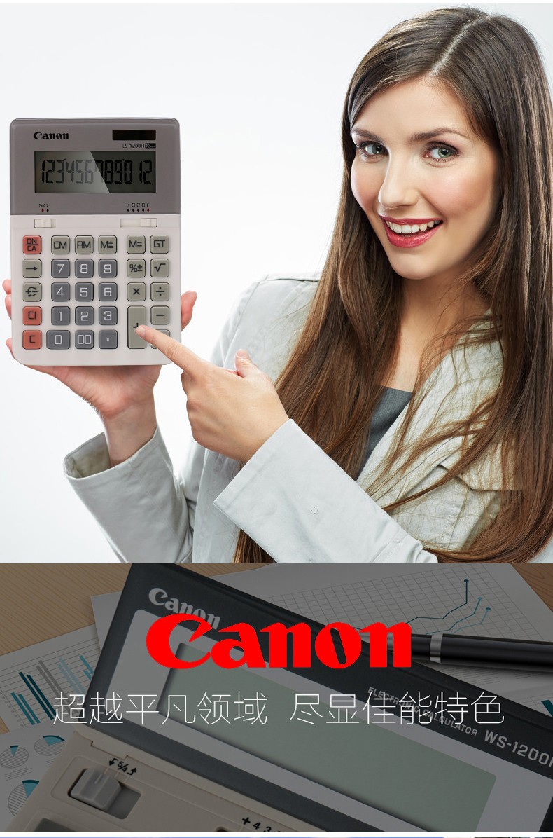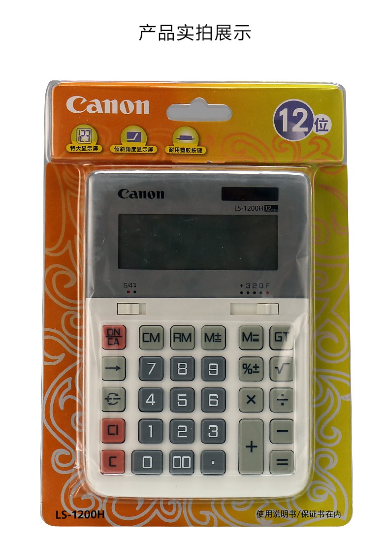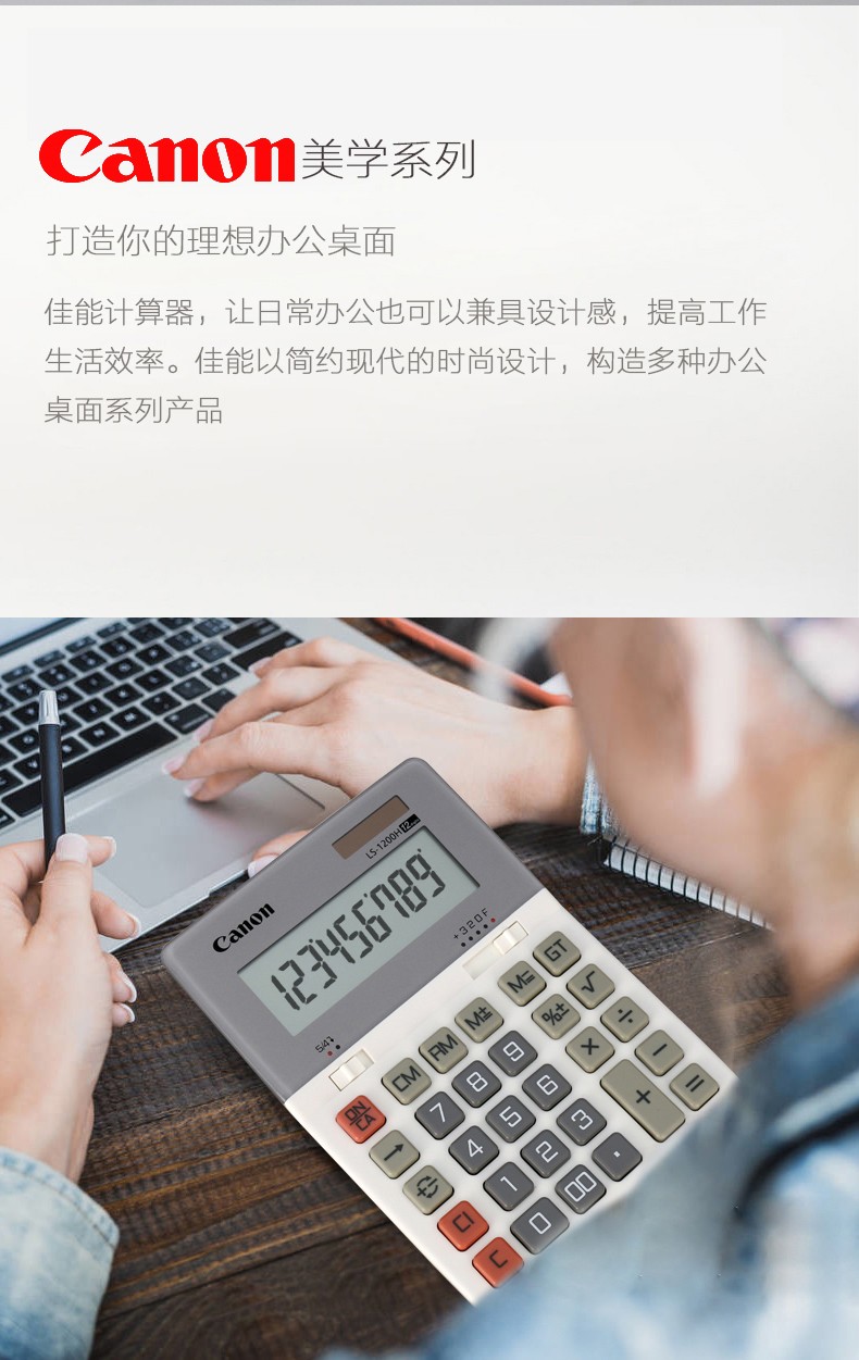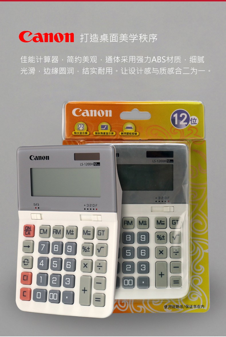 佳能(Canon) LS-1200H电子台式出纳会计财务计算器12位数大号太阳能商务型办公用计算机 自营