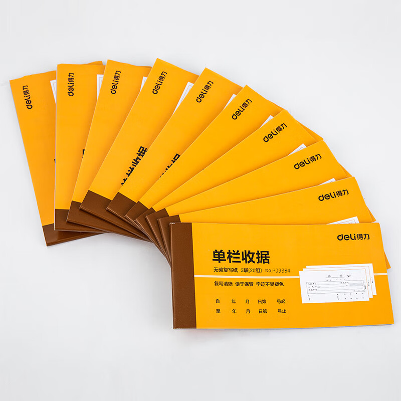 得力(deli)10本无碳原纸三联单栏收据 财务手写收据单 财务用品 办公用品 9384 自营
