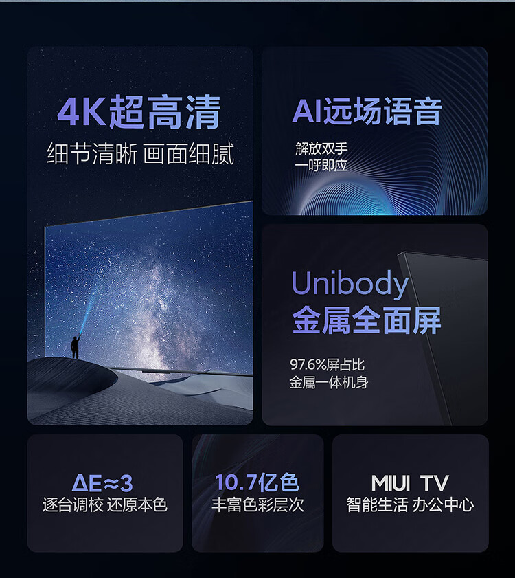 小米电视EA75 75英寸 金属全面屏 远场语音 逐台校准4K超高清智能教育电视机L75M7-EA 自营