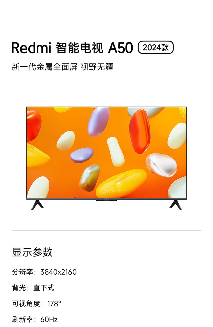 小米电视 Redmi A50 50英寸 2024款 4K超高清远场语音电视 金属全面屏 智能液晶护眼平板电视L50RA-RA 自营