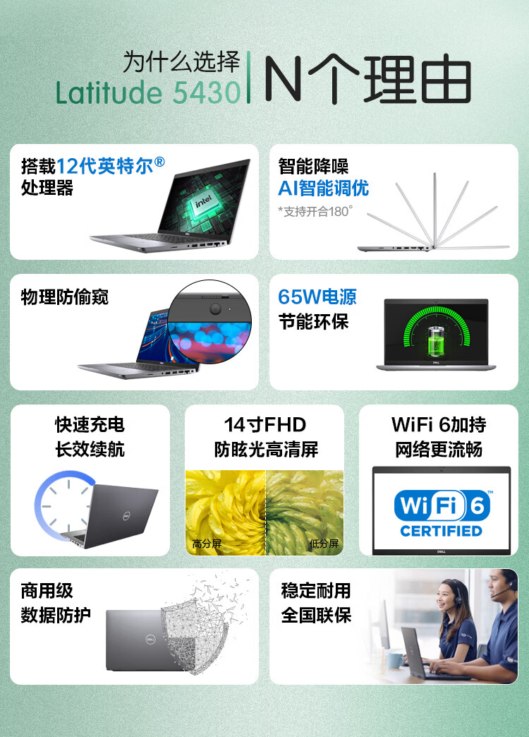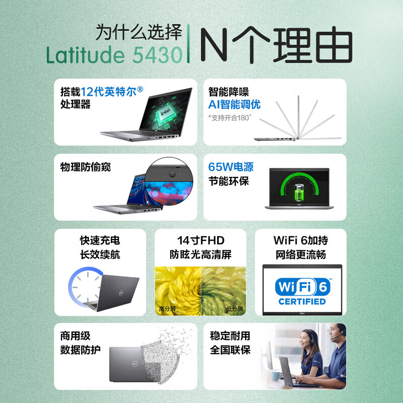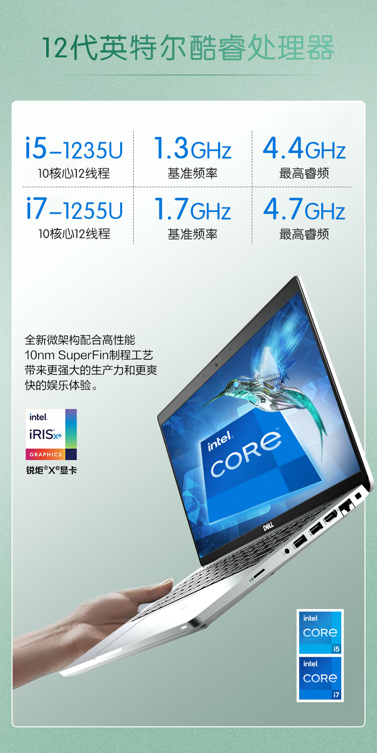 戴尔(DELL)Latitude5430高端性能商用办公设计游戏轻薄14英寸笔记本电脑手提本12代酷睿I7-1255U 16G 512G/高分屏/定制 自营