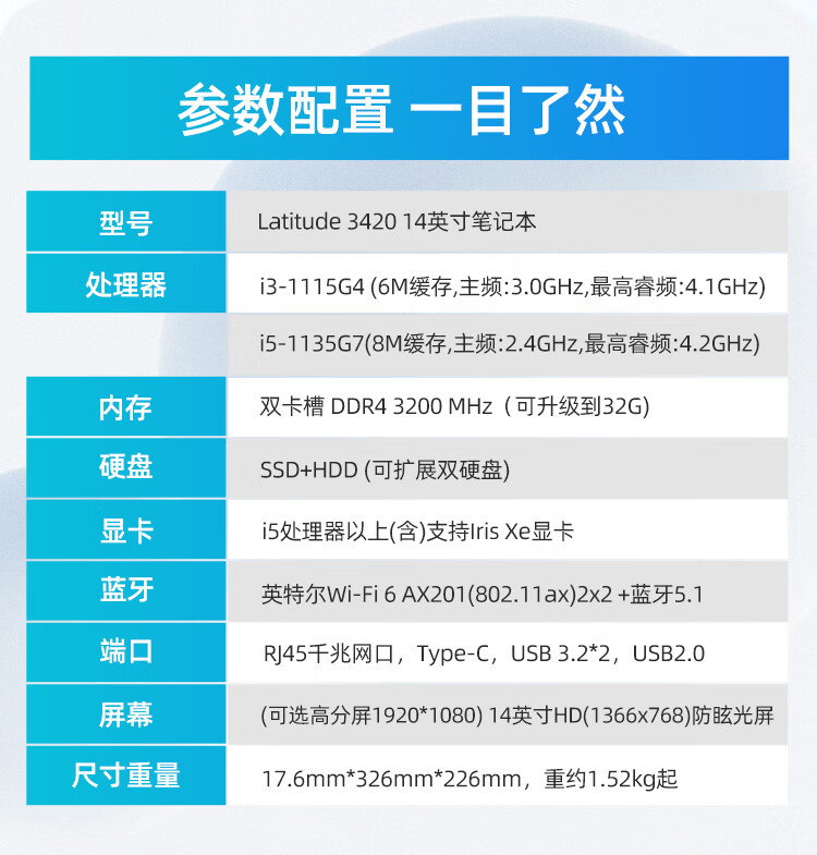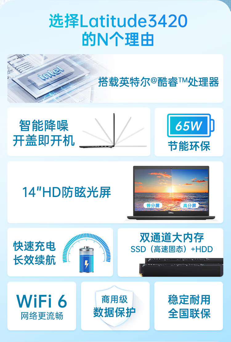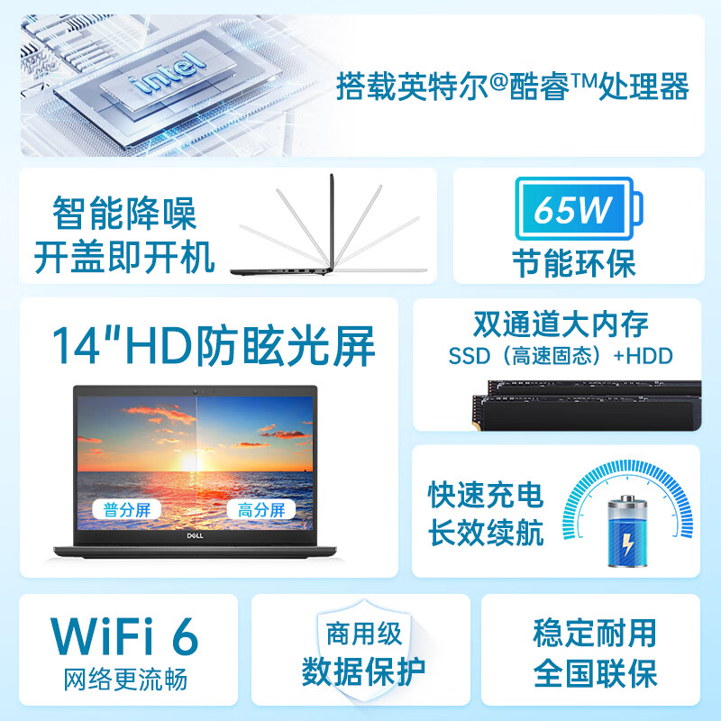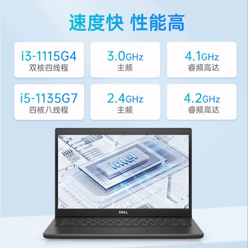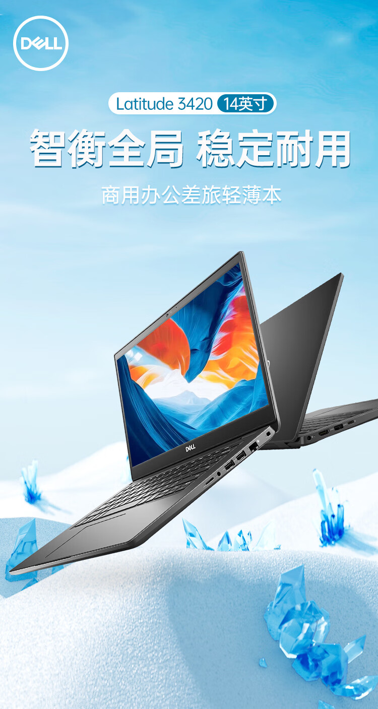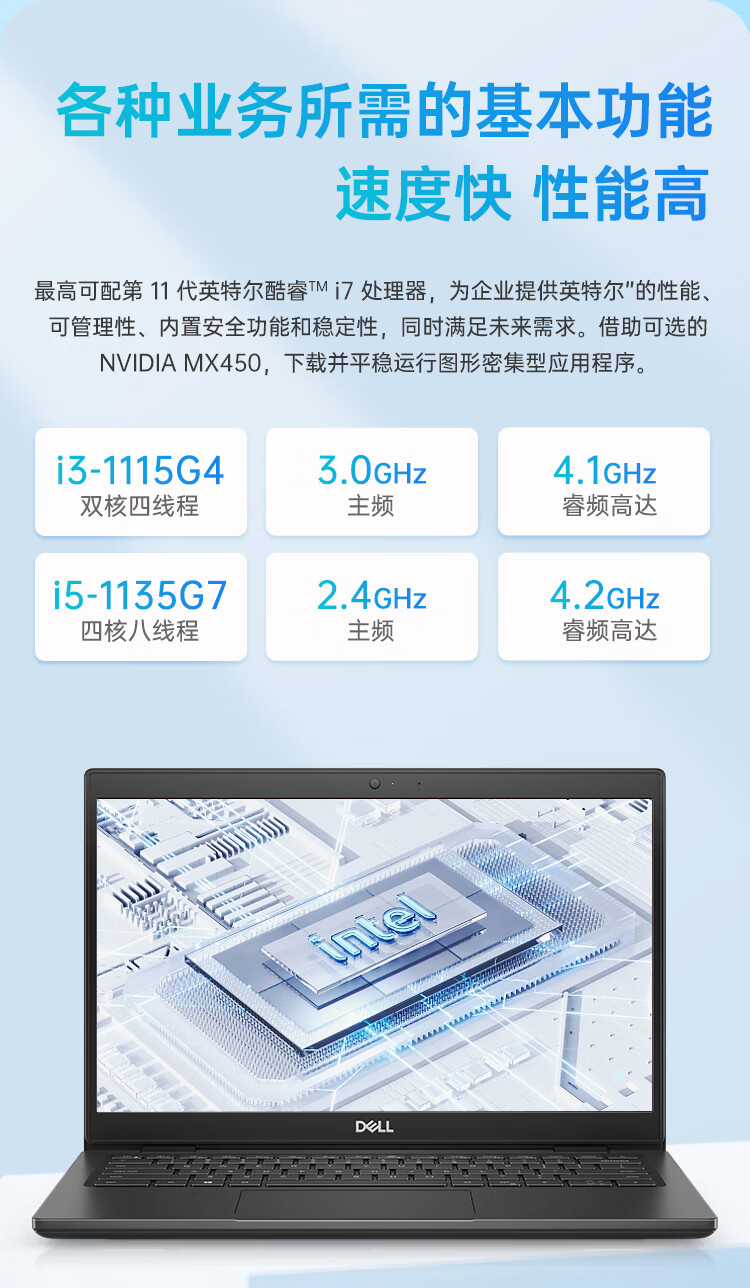 戴尔(DELL)latitude 3420 14英寸商用办公财务炒股学生网课笔记本电脑轻薄本i3-1115G4 8G 256G+1T/WiFi6/定制 自营