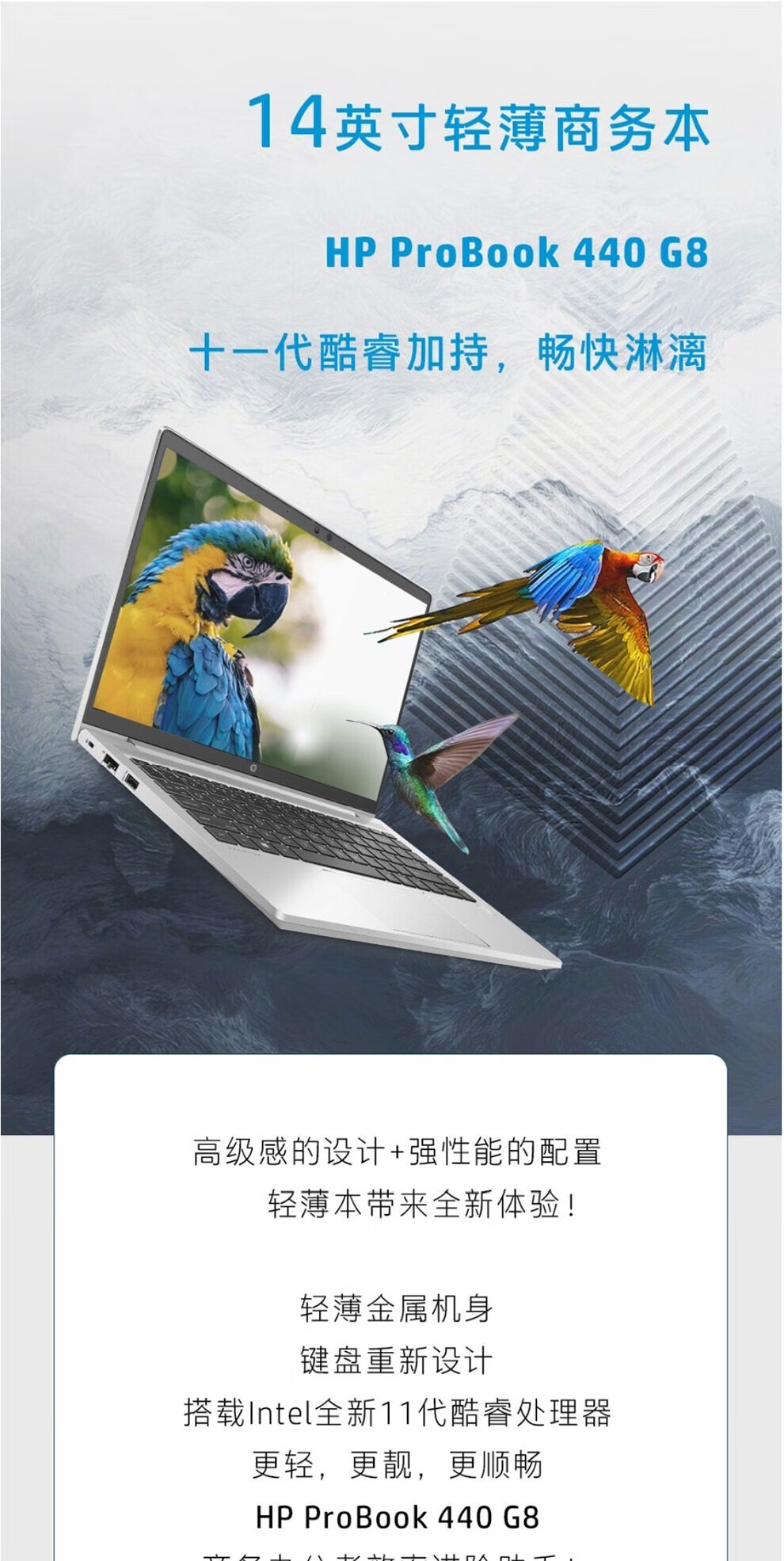 惠普(HP)笔记本 ProBook 440G8 14英寸商用轻薄笔记本电脑(i5-1135G7 8G 256G 集成显卡) 自营