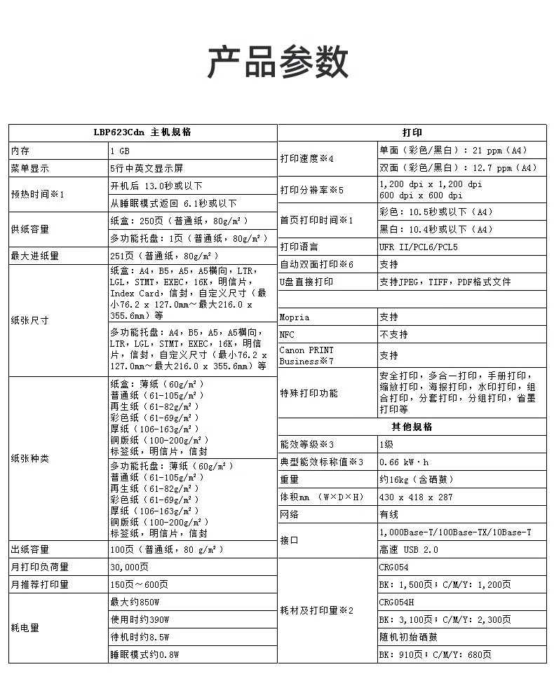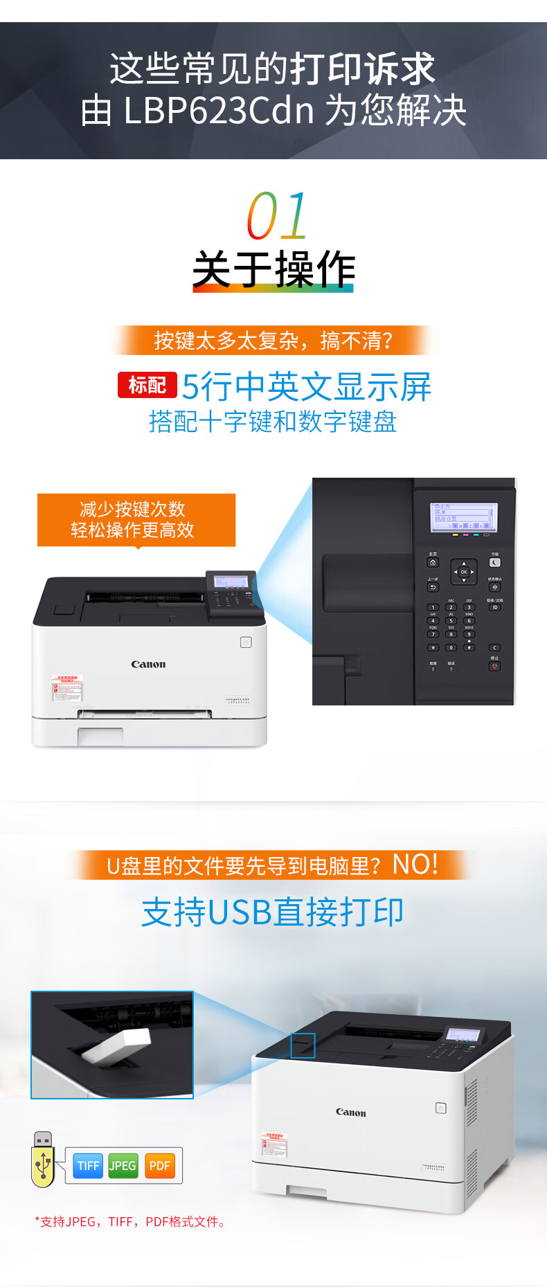 佳能(Canon) LBP623Cdn A4彩色激光单功能打印机(自动双面打印/大容量进纸 商用办公) 支持统信/麒麟系统 自营