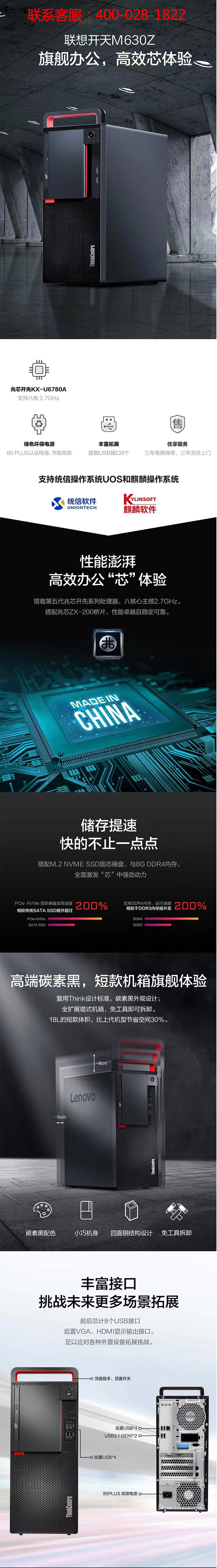 联想开天M630Z国产台式电脑【支持Win7和国产系统】兆芯KX-U6780A/8G/1T+256G固态/1G/DVDRW/23.8英寸 自营