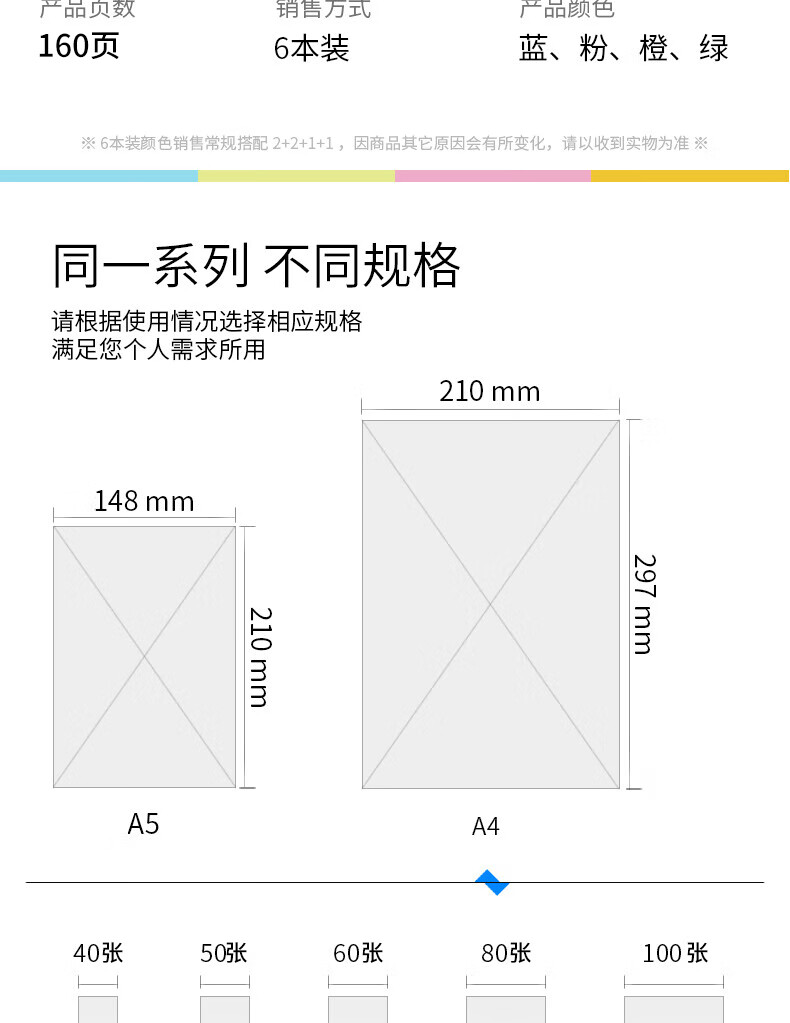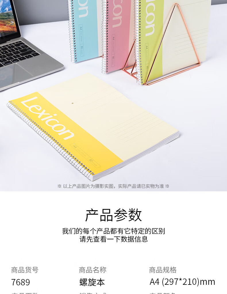 得力(deli) 6本/包 A4/80页螺旋装订本软抄本记事本笔记本子 7689-6 自营