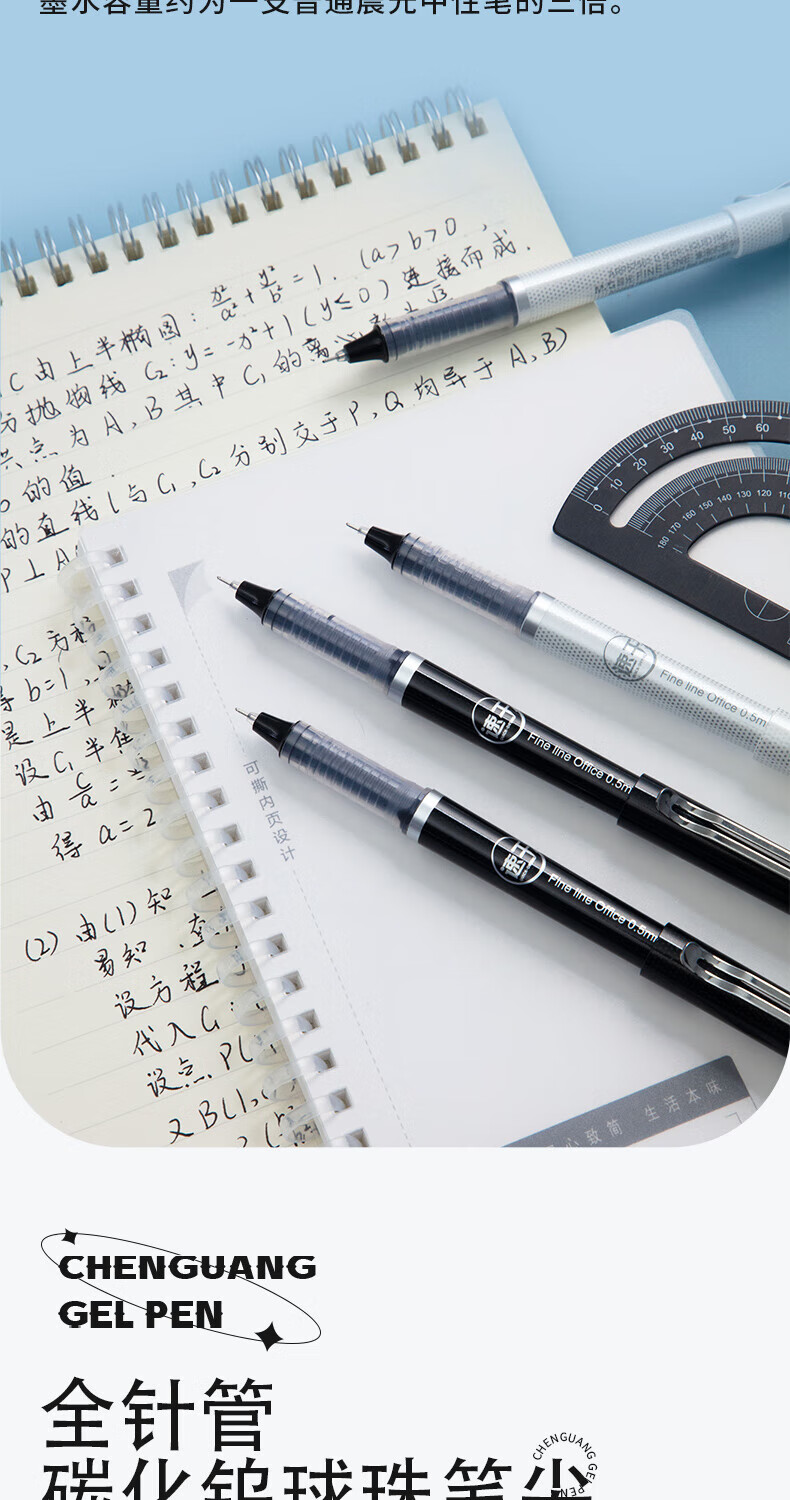 晨光(M&G)文具0.5mm黑色中性笔 速干全针管签字笔 直液式水笔ARP57501A 12支/盒 自营