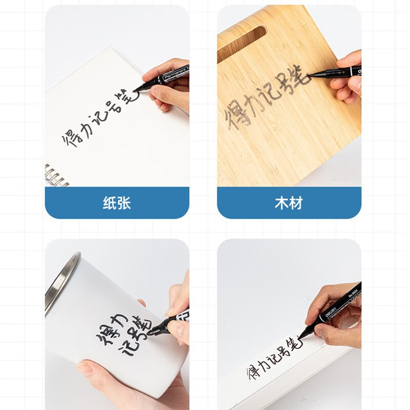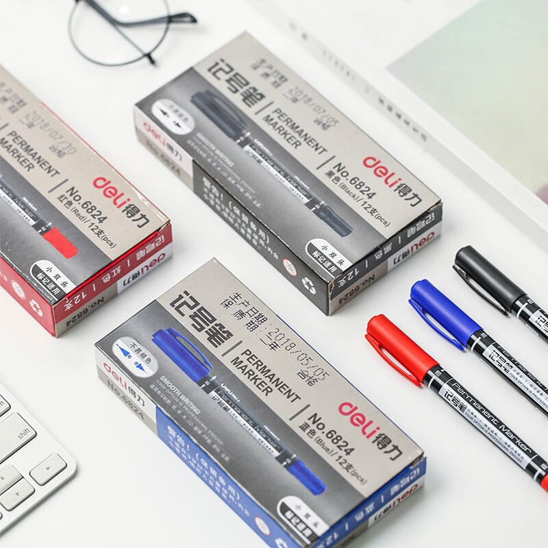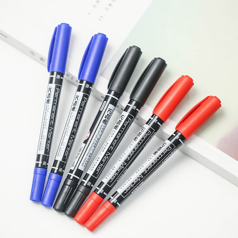 办公用品得力记号笔得力6824双头油性马克笔 勾线笔 油性笔 蓝色 自营