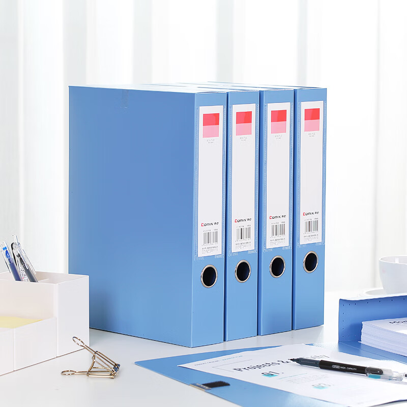 齐心(Comix) A4 55mm粘扣档案盒/文件盒/资料盒 蓝色 办公文具 A1249 一只装 自营