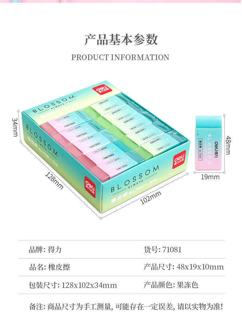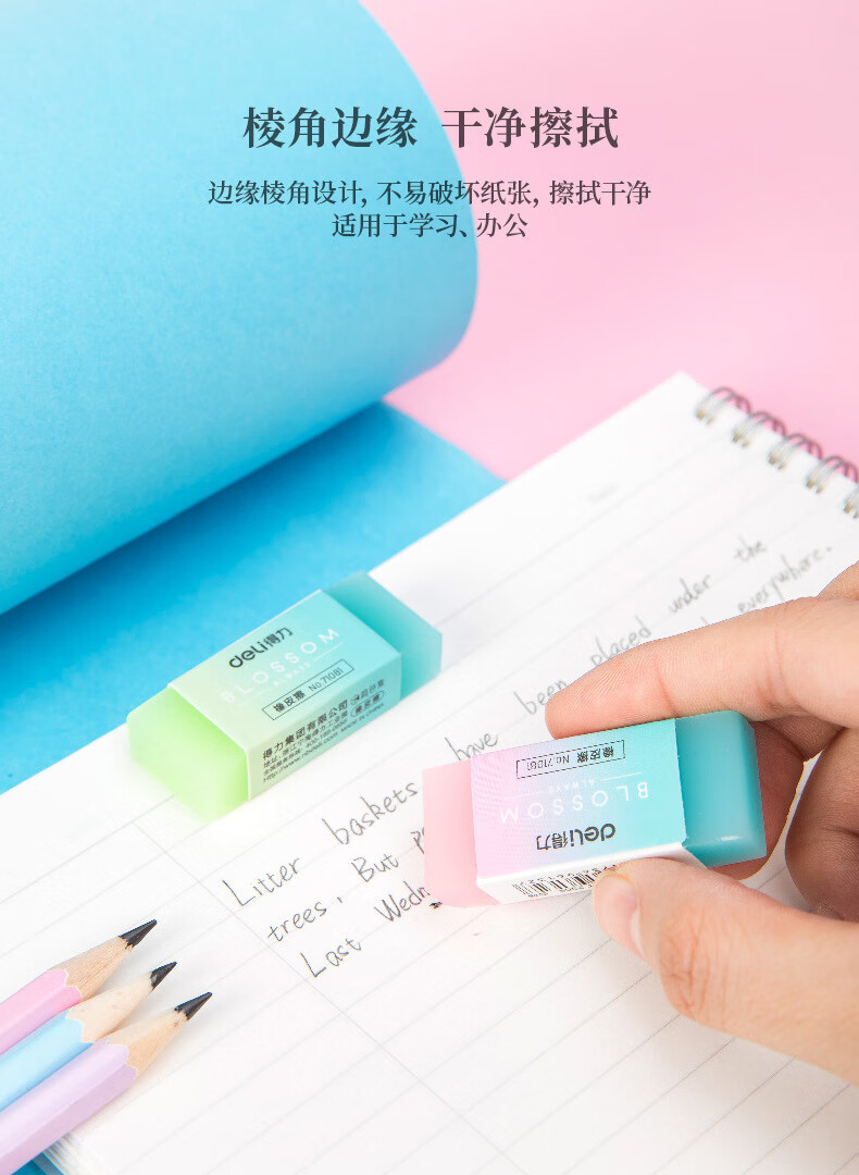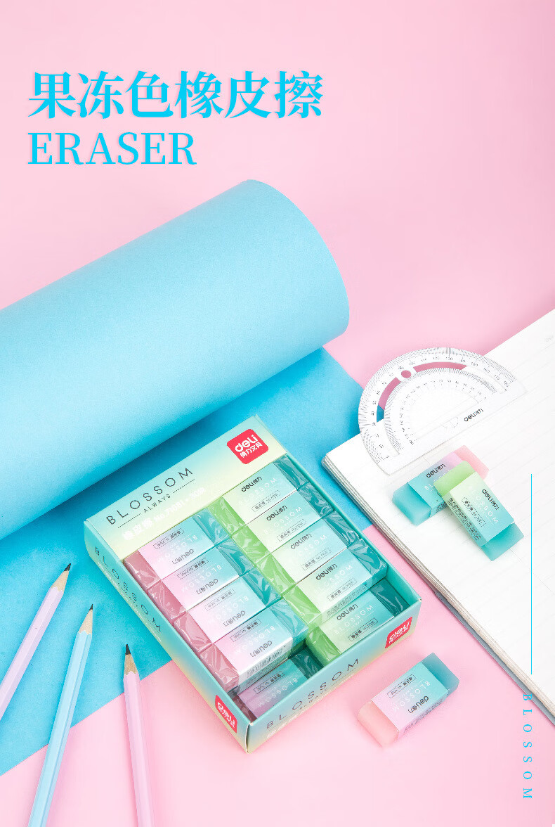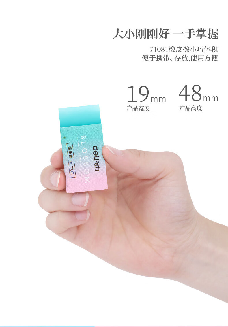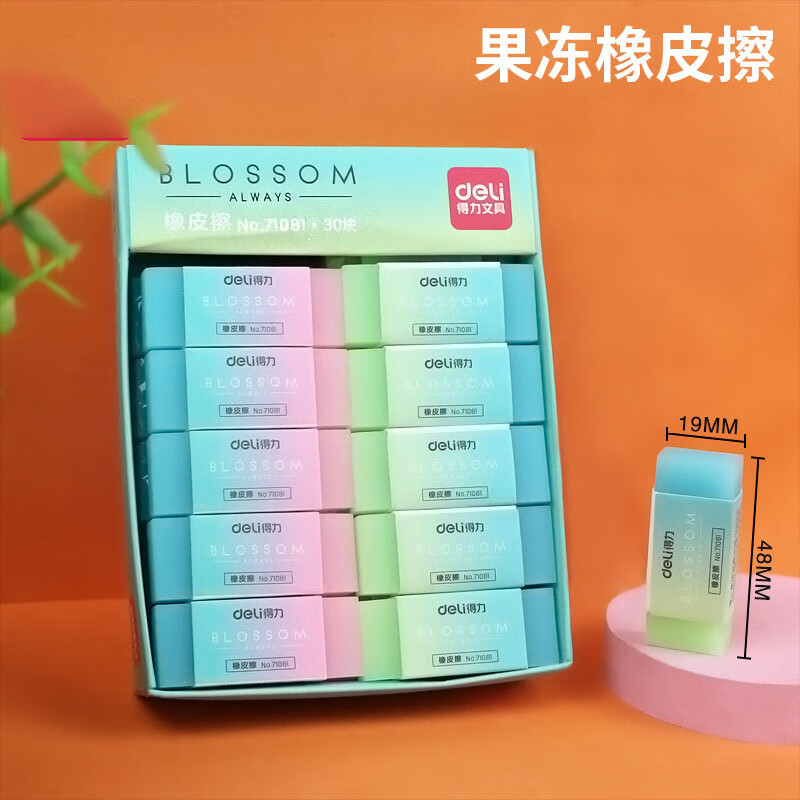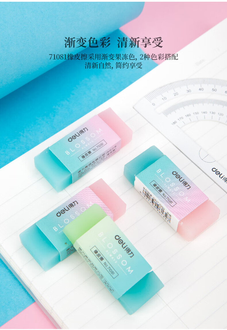 得力 果冻色渐变色橡皮檫学生擦的干净橡皮不留痕绘画橡皮擦 单块71081 自营