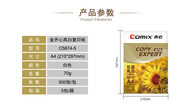齐心高速王A4复印纸 80g双面打印纸500张/包a4纸办公用纸 【A4-80g-5包】金齐心C5884-5 自营