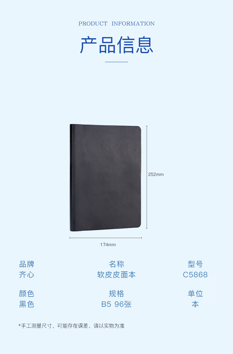 齐心(Comix)B5/96张软皮皮面本笔记本子日记本会议记事本商务办公用品 黑C5868 自营